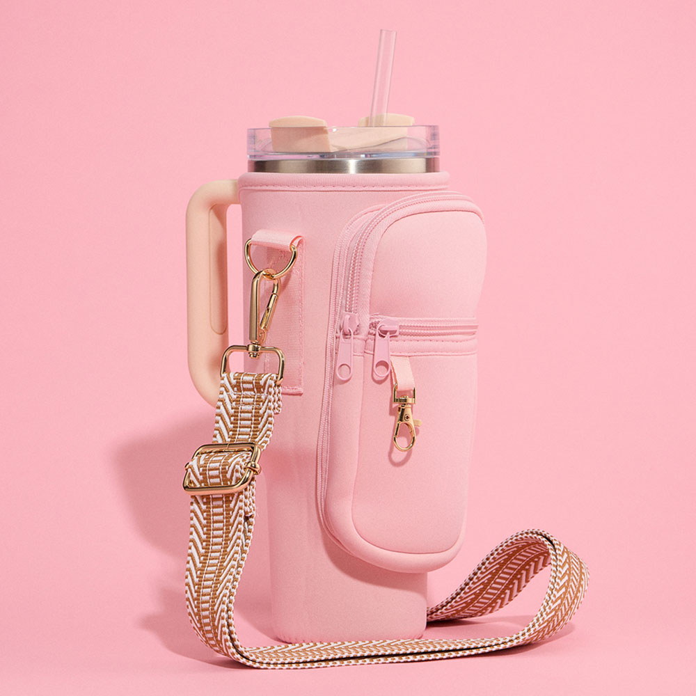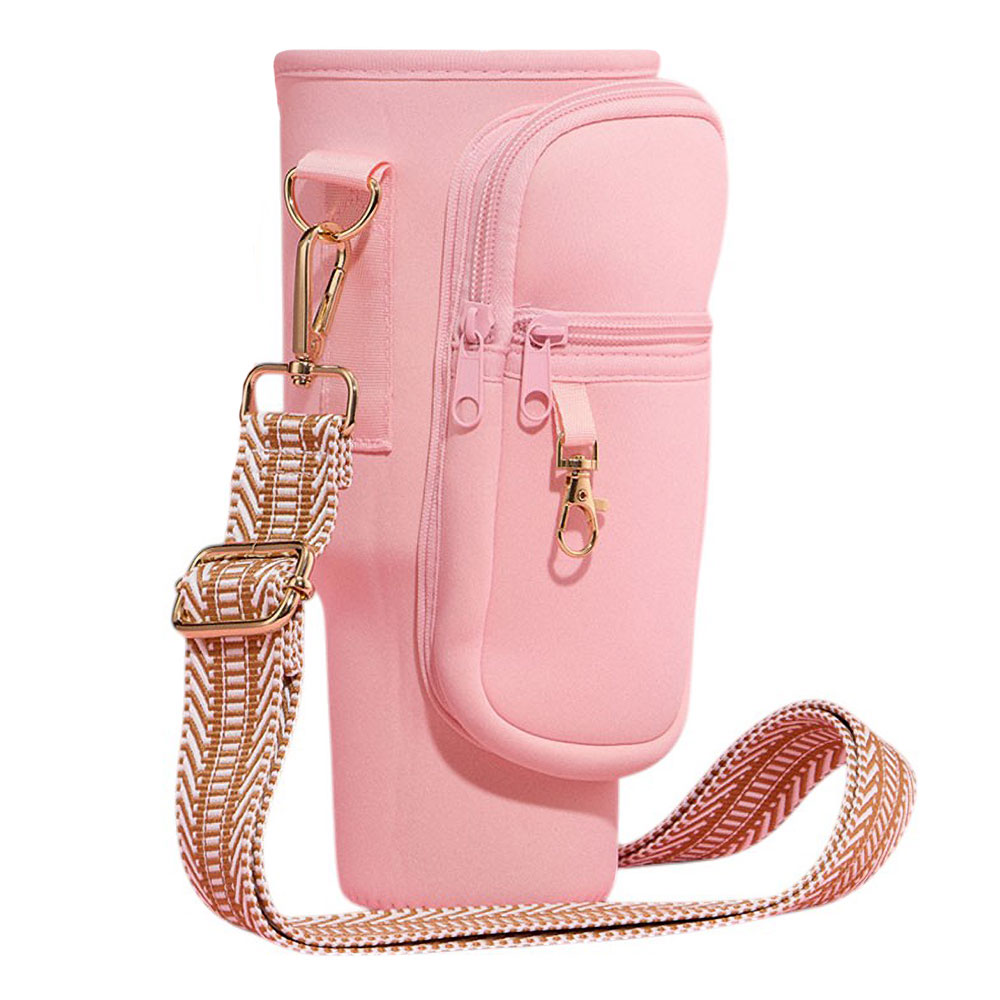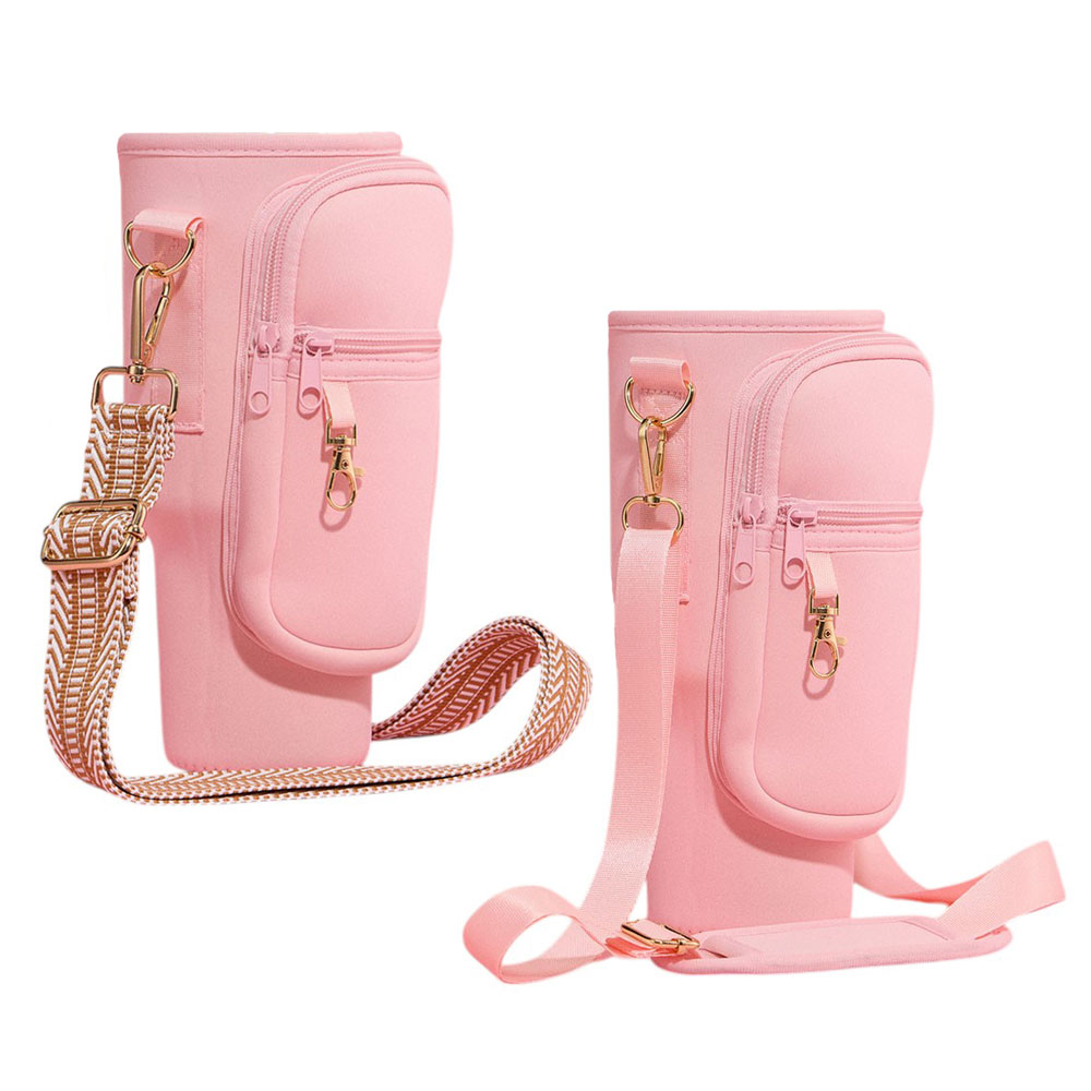 Solid Tumbler Carrier Holder Chevron Pattern Strap Crossbody Bag
