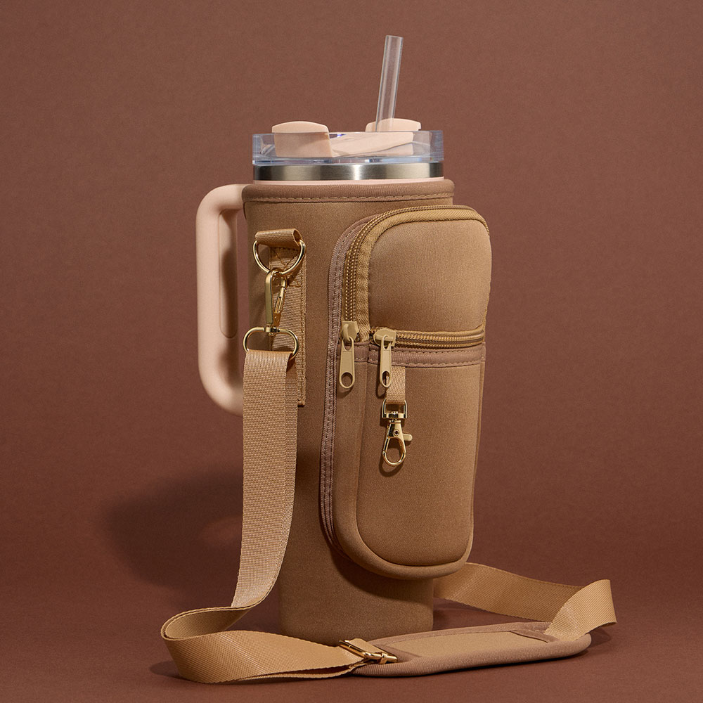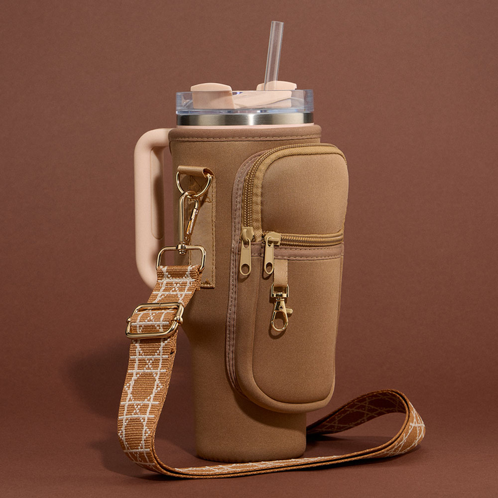 Solid Tumbler Carrier Holder Geometric Pattern Strap Crossbody Bag