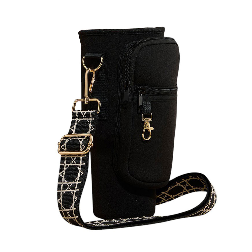 Solid Tumbler Carrier Holder Geometric Pattern Strap Crossbody Bag