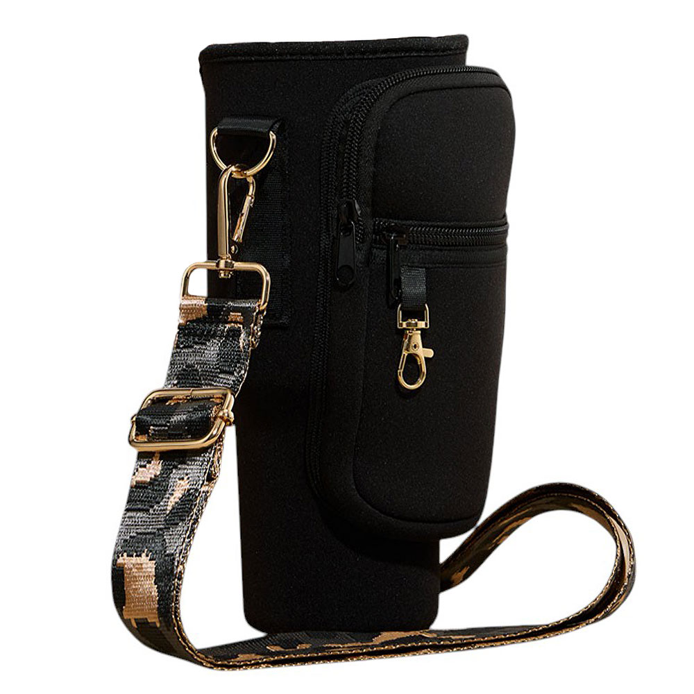 Solid Tumbler Carrier Holder Leopard Pattern Strap Crossbody Bag