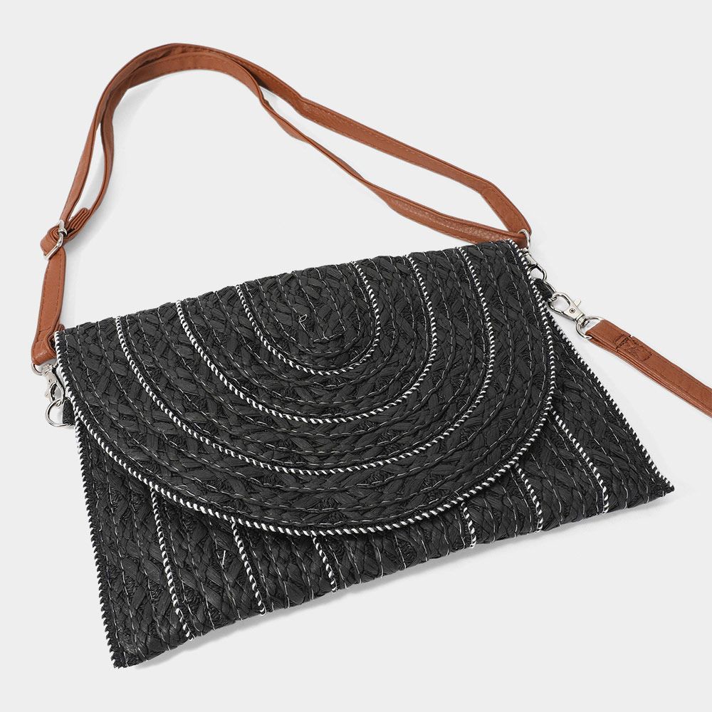 Stitch Detailed Straw Clutch Bag / Crossbody Bag