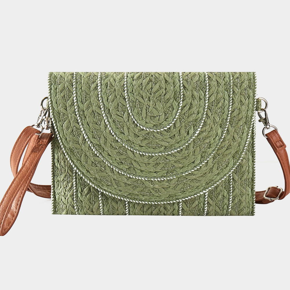 Stitch Detailed Straw Clutch Bag / Crossbody Bag
