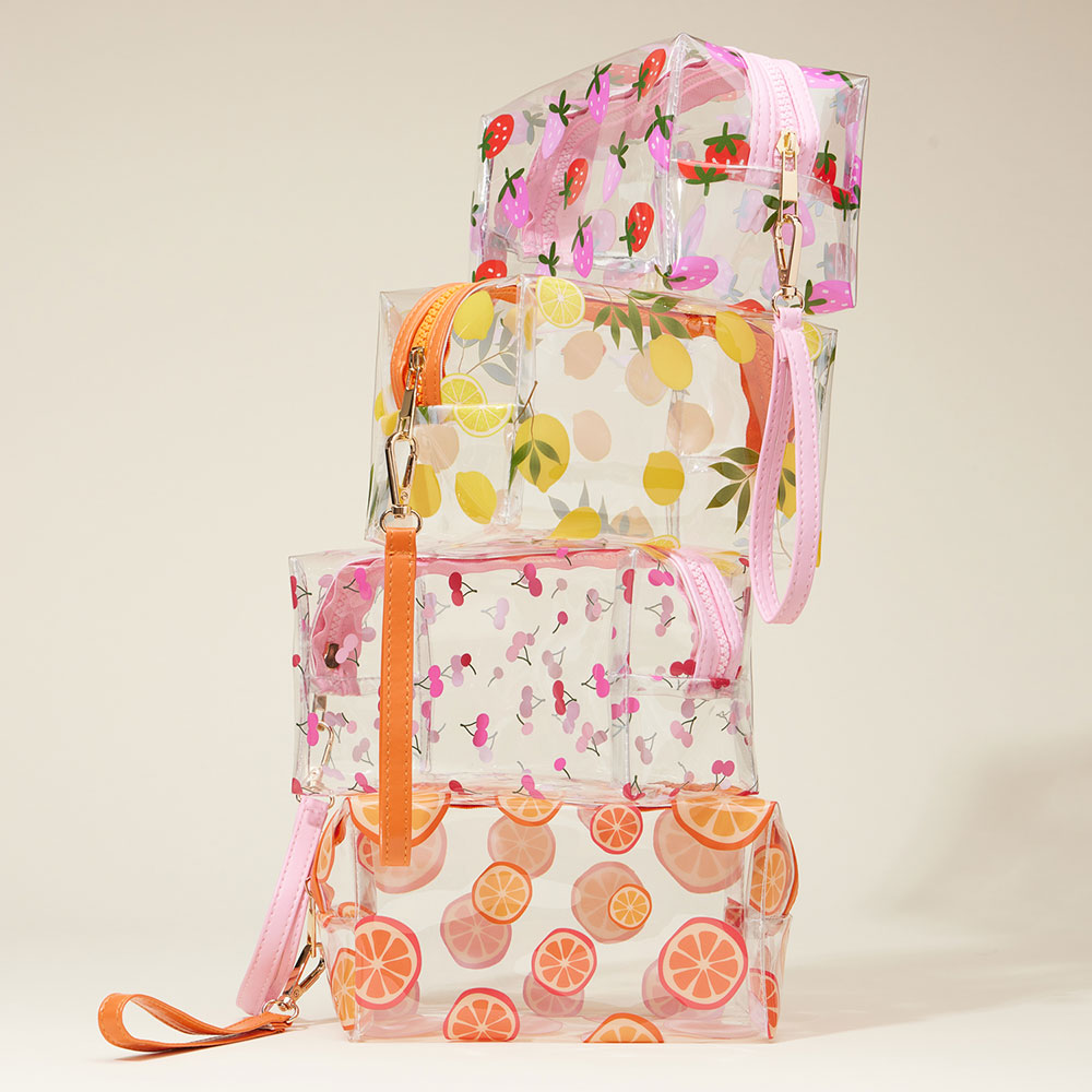 Orange Pattern Transparent Cosmetic Pouch Bag