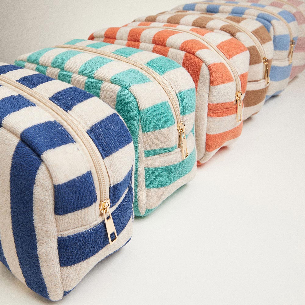 • Stay stylish and organized with our striped travel pouch! Crafted from soft, durable fabric, it's perfect for storing your essentials on the go. Shop now for the perfect blend of fashion and function!