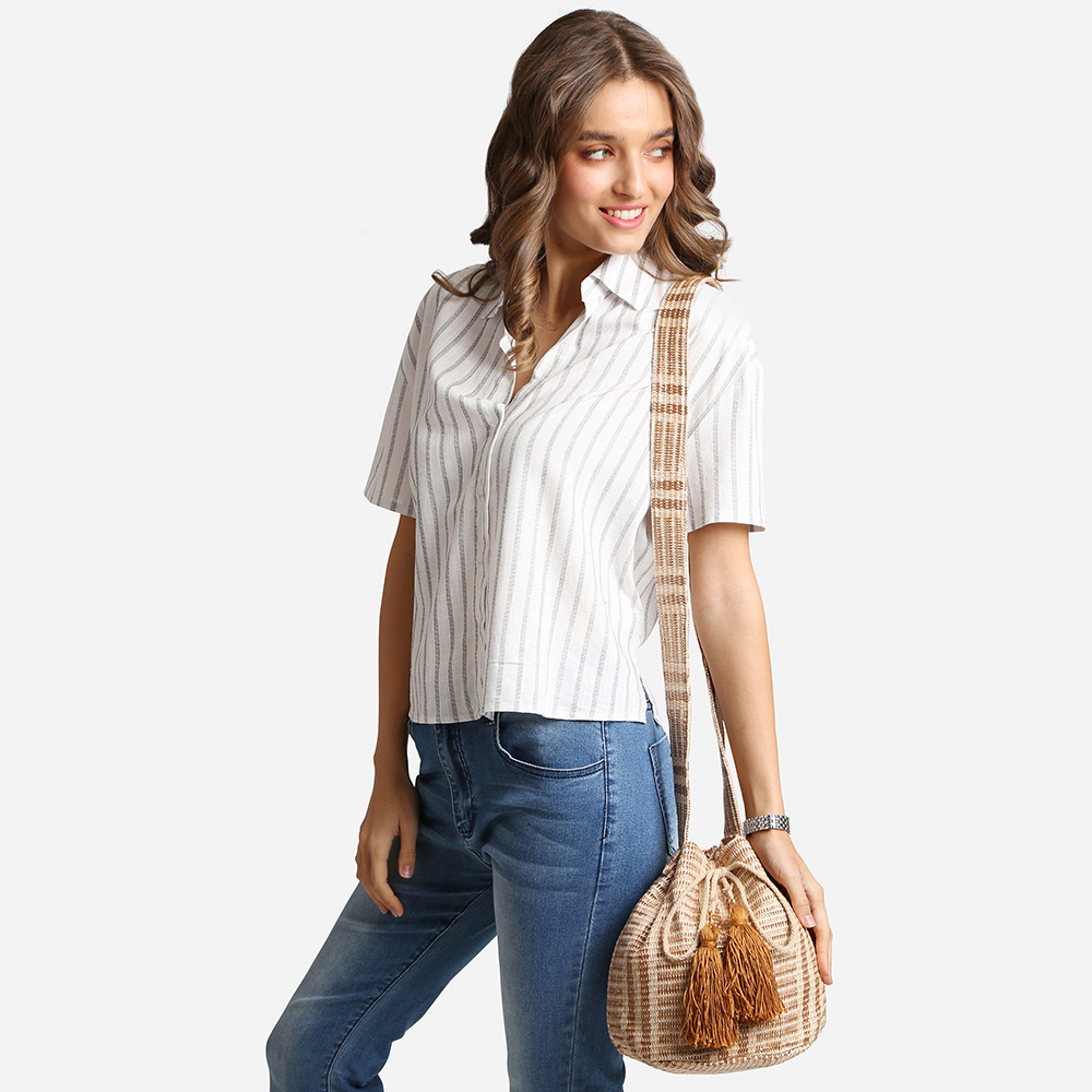 5PCS - Puka Shell Pointed Aztec Pattern Cinch Pull Tie Tassel Pointed Stretch Multi Layered Bracelets