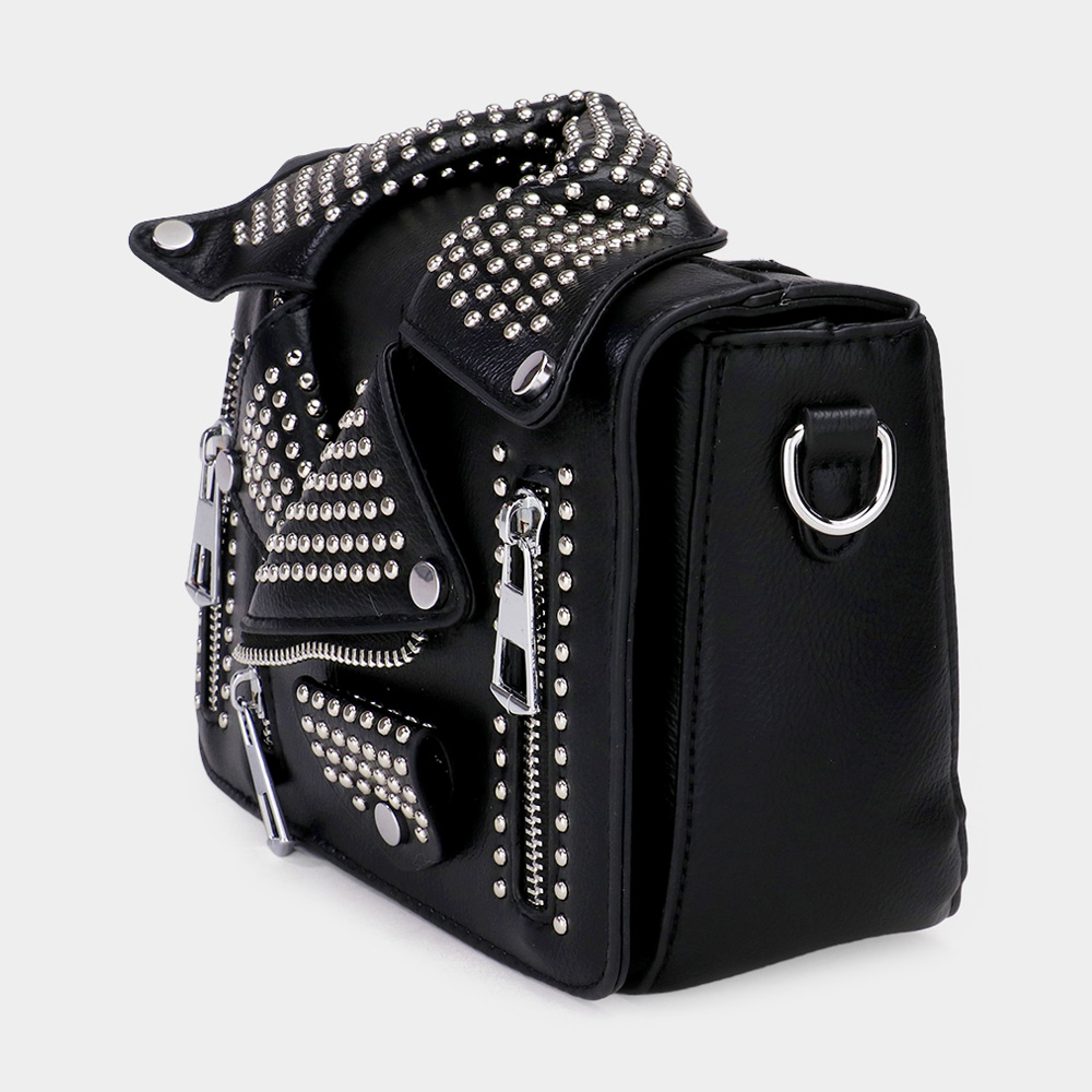 Studded Faux Leather Jacket Designed Crossbody Bag