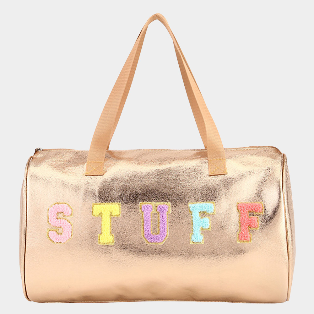 STUFF Message Metallic Top Handle Duffle Bag / Crossbody Bag