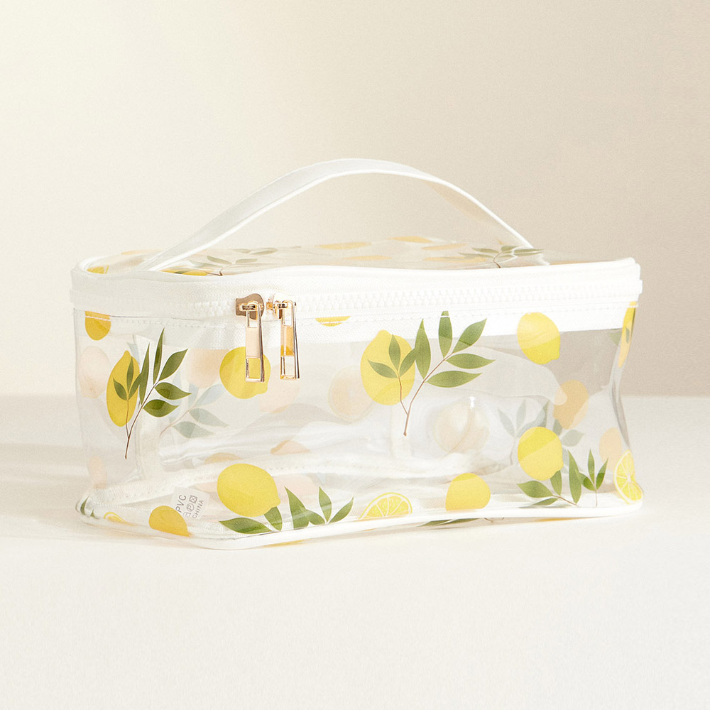 Top Handle Lemon Pattern Transparent Cosmetic Pouch Bag