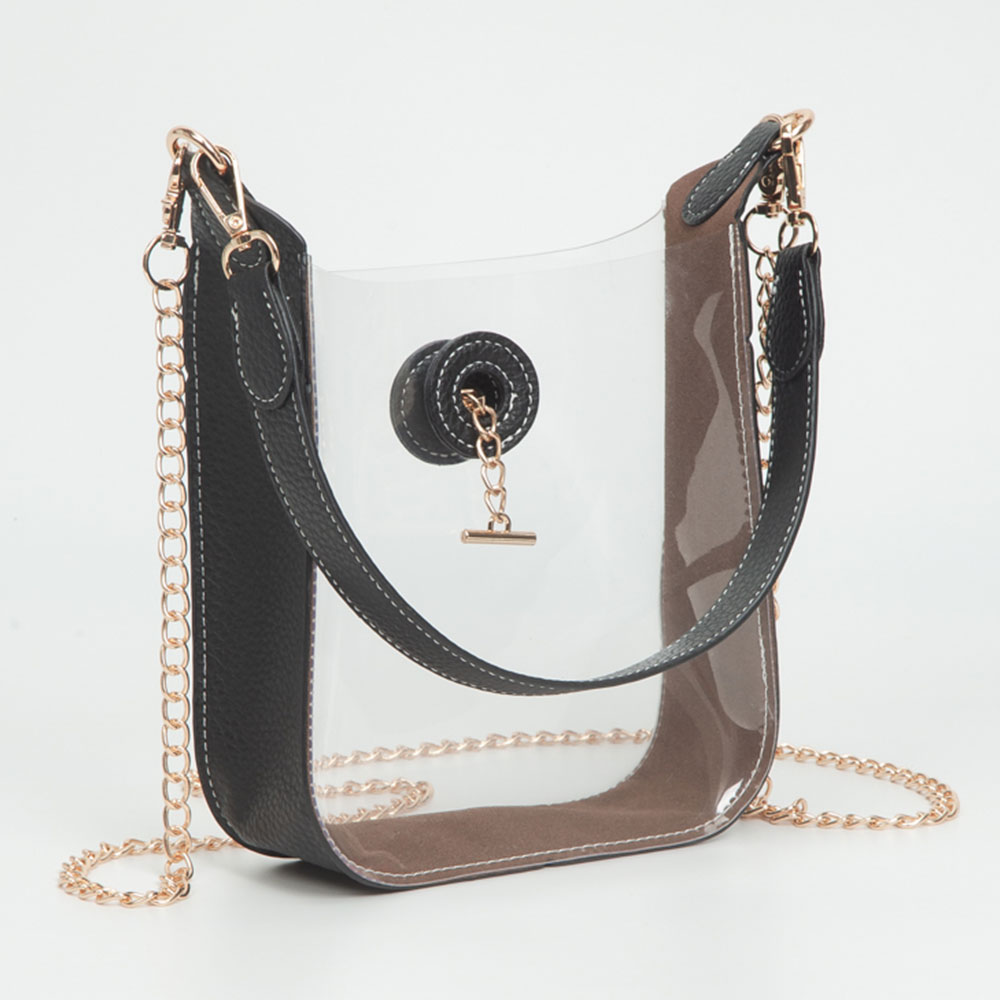 Details • Size : 6.5" X 9" X 2.5" • Strap 1 Size : 17.5" L / Detachable • Strap 2 Size : 46" L / Detachable • This transparent chain shoulder bag blends modern minimalism with chic detailing. Featuring a clear structured body, secure clasp, and metallic chain strap, it’s perfect for concerts, events, or everyday outings, offering easy visibility and sleek sophistication in one stylish piece.