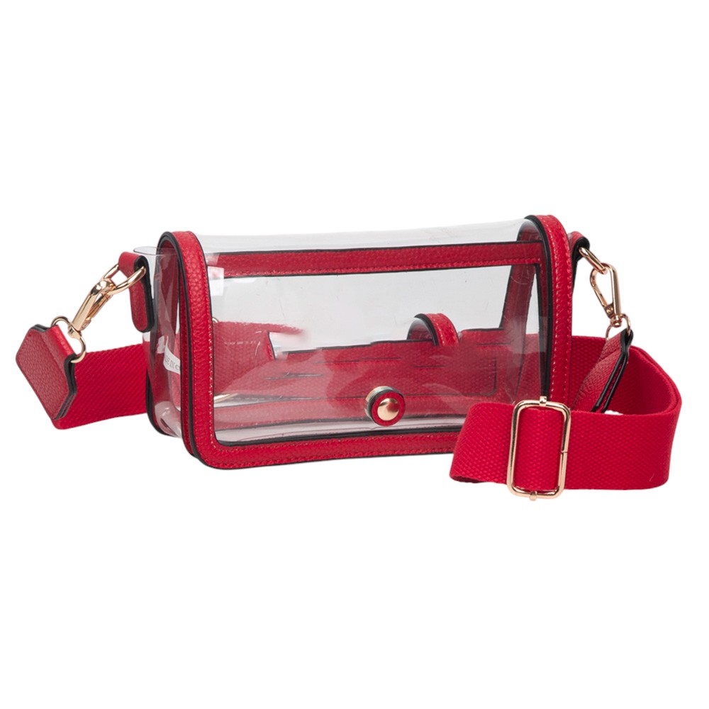 • Stay stylish and compliant with this clear stadium-approved crossbody bag, featuring black trim, secure snap closure, and an adjustable shoulder strap for comfort. Perfect for concerts, sporting events, festivals, and everyday use, offering convenience while meeting event regulations with ease.