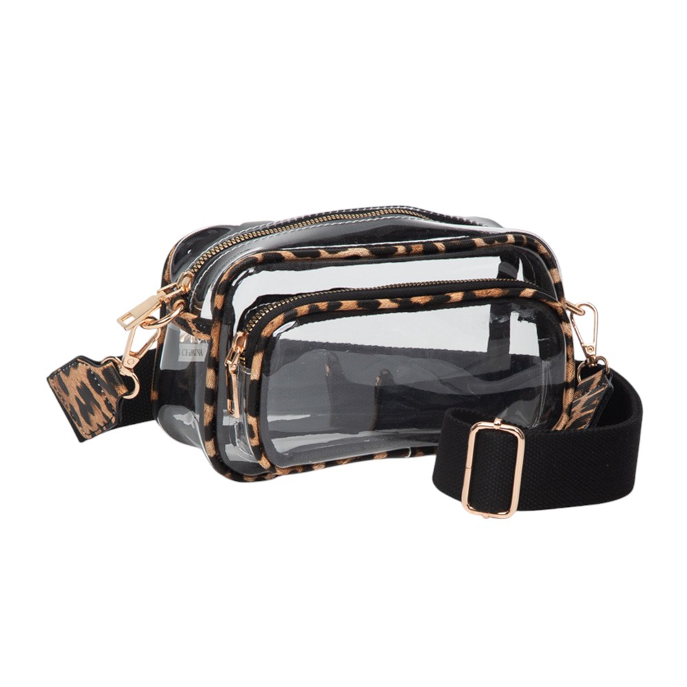 • Be game day ready with this clear stadium-approved crossbody bag, featuring white trim, dual zip compartments, and an adjustable strap for hands-free comfort. Perfect for concerts, sporting events, festivals, and venues with clear bag policies, offering style, security, and convenience on the go.