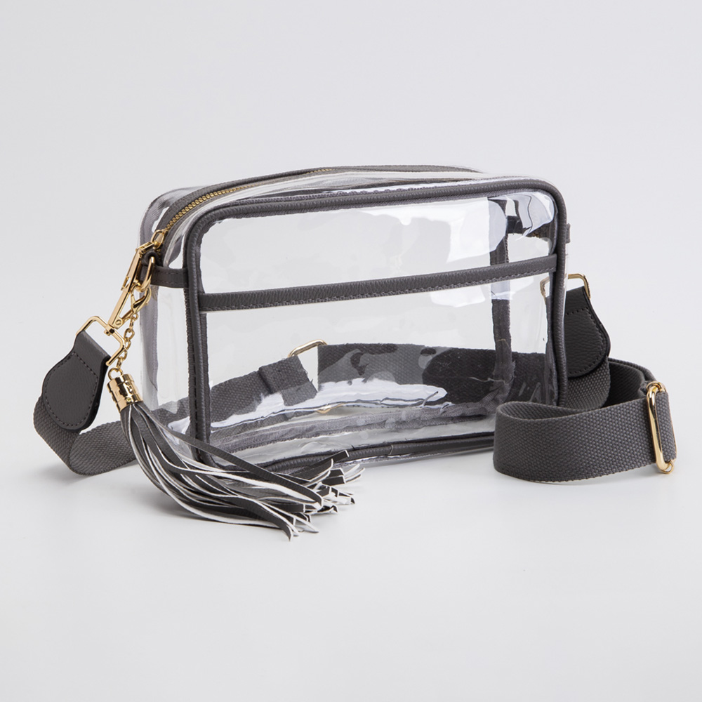 • Practical and stylish clear crossbody bag with zipper closure, tassel accent, and adjustable detachable strap for comfortable wear. Perfect for concerts, stadiums, festivals, or daily use where clear bags are required, offering secure storage and easy visibility of essentials.