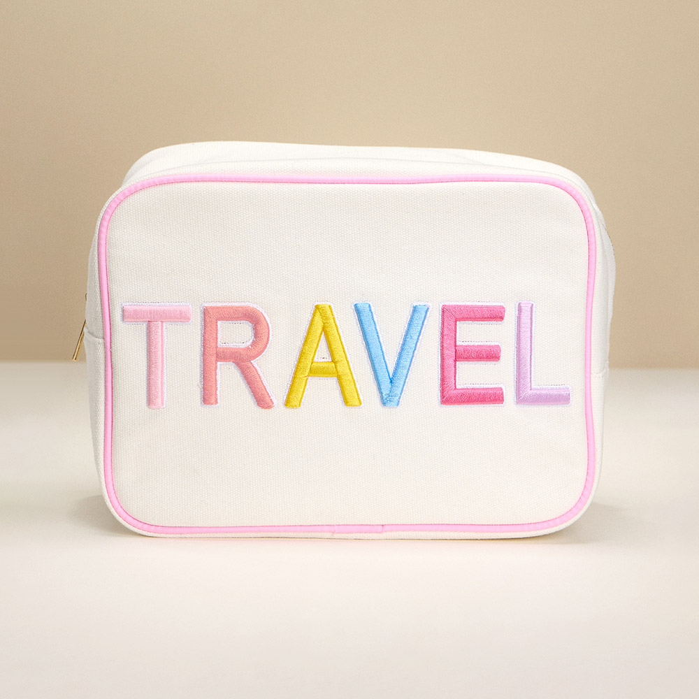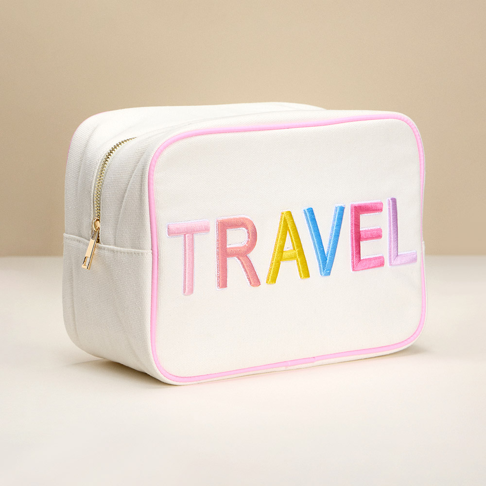 TRAVEL Message Embroidered Pouch Bag / Organizer