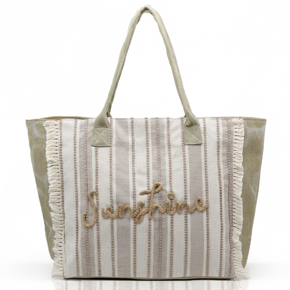 Vintage SUNSHINE Message Stripe Fringe Tote Bag
