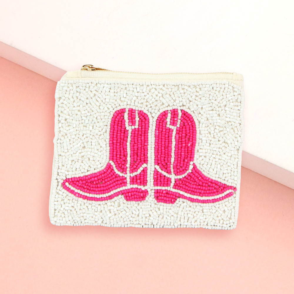 Western Cowboy Boots Seed Beaded Mini Pouch Bag
