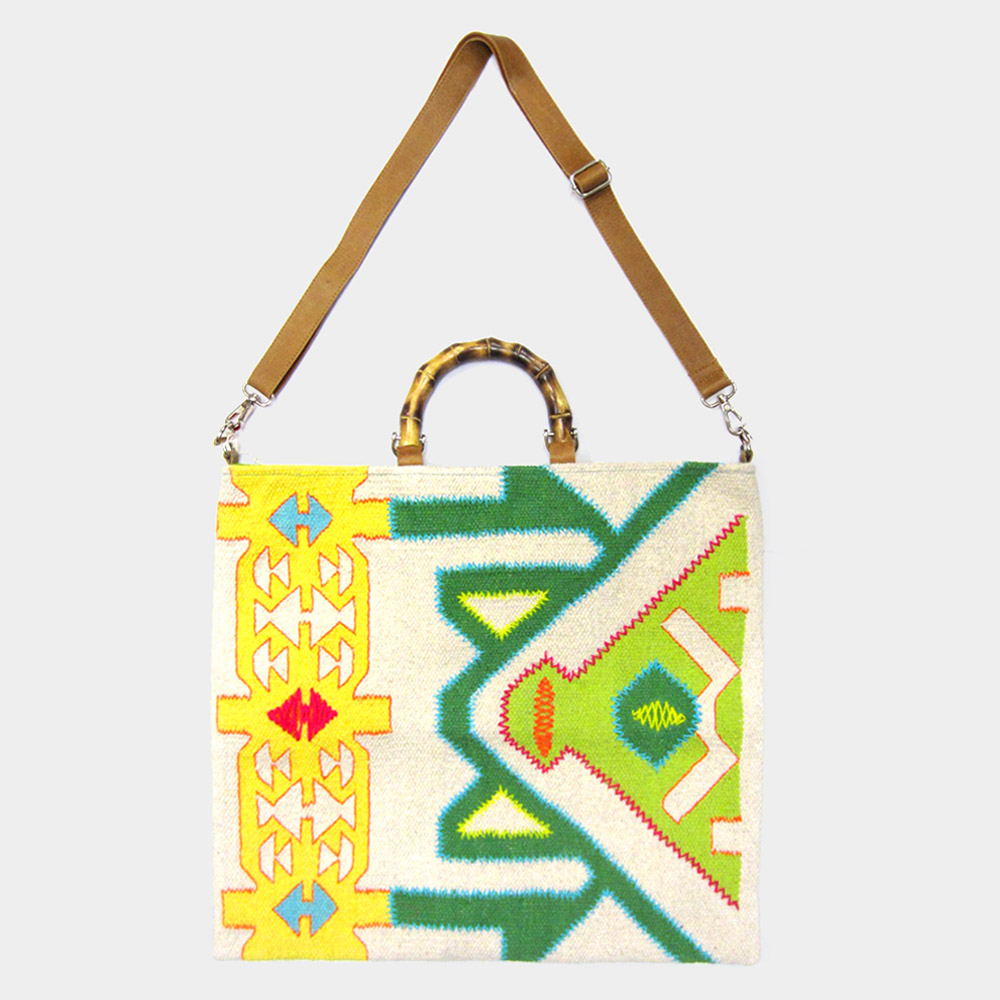 Details • Size : 17.5" X 17" • Top Handle Size : 5" L • Strap: Adjustable / Detachable • Magnet Closure • One Inside Zipper Pocket • Two Inside Slip Pockets • Made In India