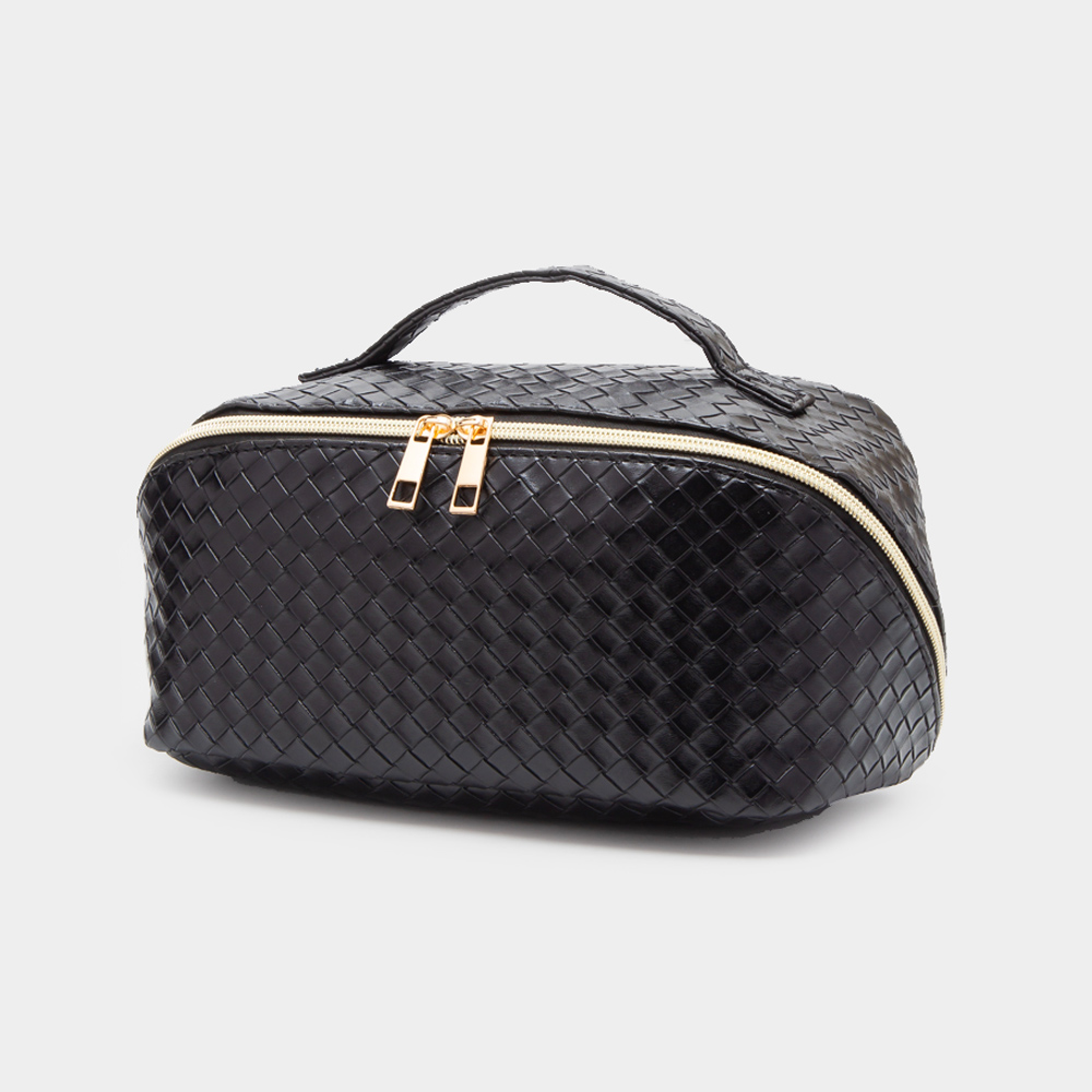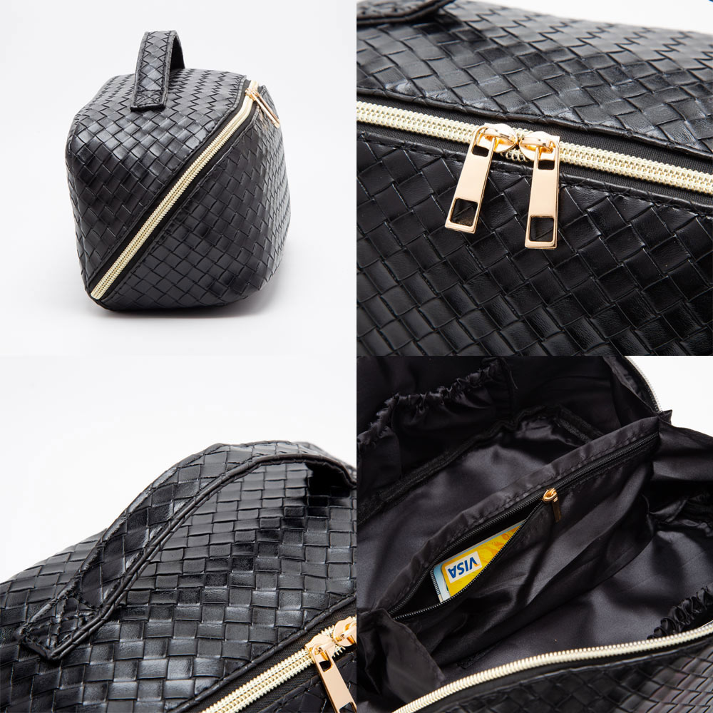 Woven Detailed Solid Tote Bag / Travel Cosmetic Bag