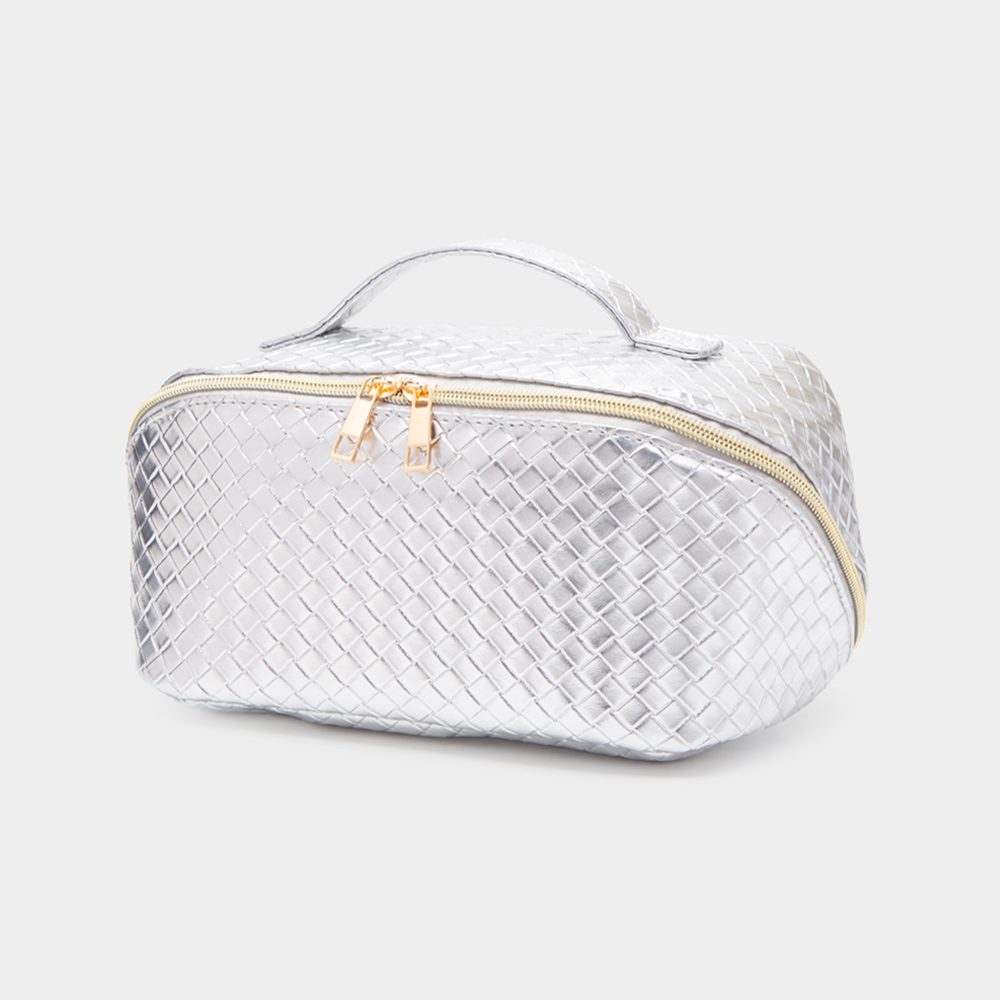 Woven Detailed Solid Tote Bag / Travel Cosmetic Bag