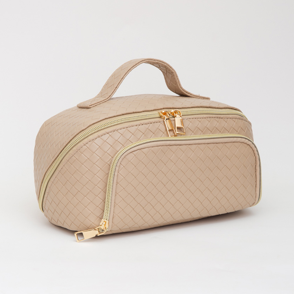 Woven Detailed Solid Tote Bag / Travel Cosmetic Bag