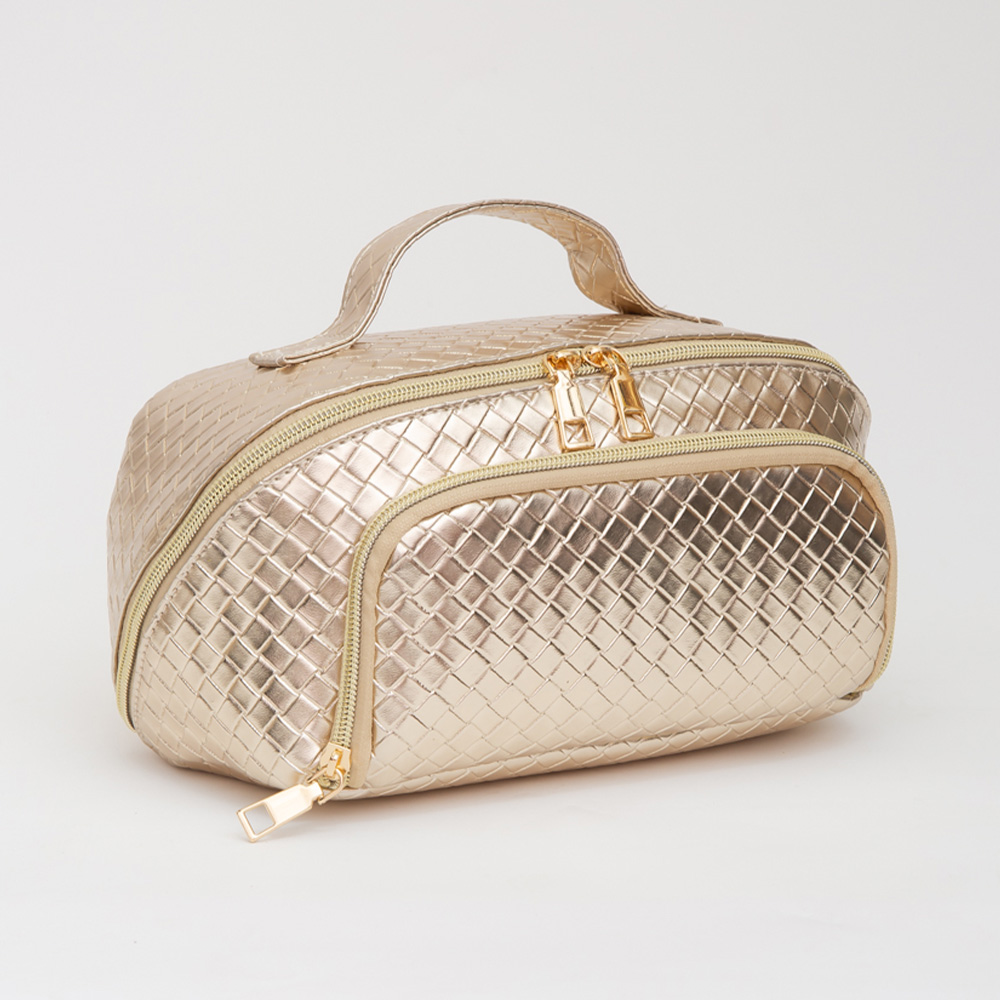 Woven Detailed Solid Tote Bag / Travel Cosmetic Bag