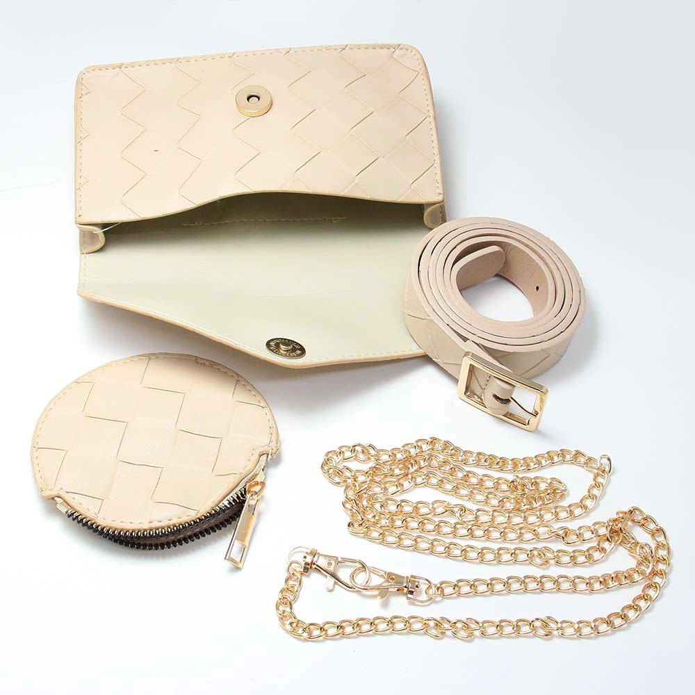 Woven Faux Leather Fanny Pack / Belt / Crossbody Bag