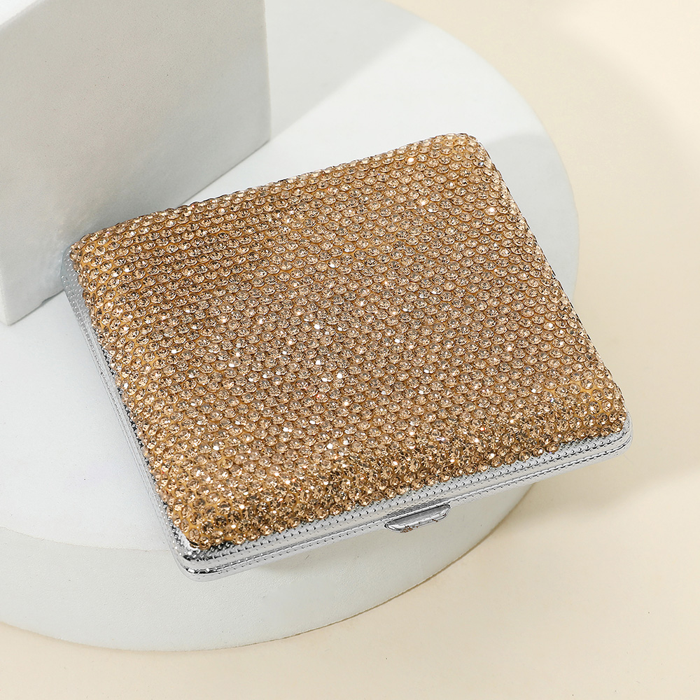 Details • Size : 3.5" X 0.75" X 3.75" • Stylish rhinestone money clip wallet with a compact square design, featuring elastic straps inside to securely hold cash, cards, and notes. Perfect for parties, travel, or daily use, this wallet combines functionality with a glamorous, eye-catching finish.