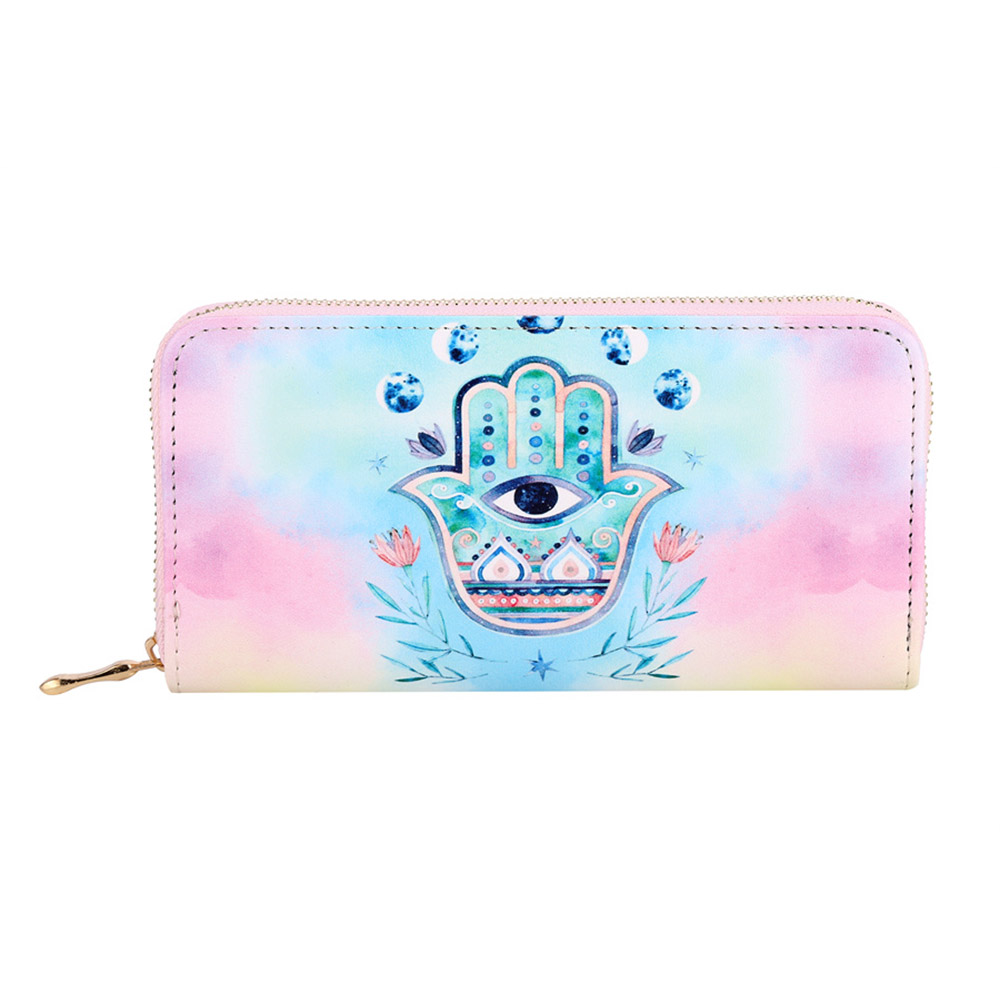 Evil Eye Centered Hamsa Hand Flower Print Wallet