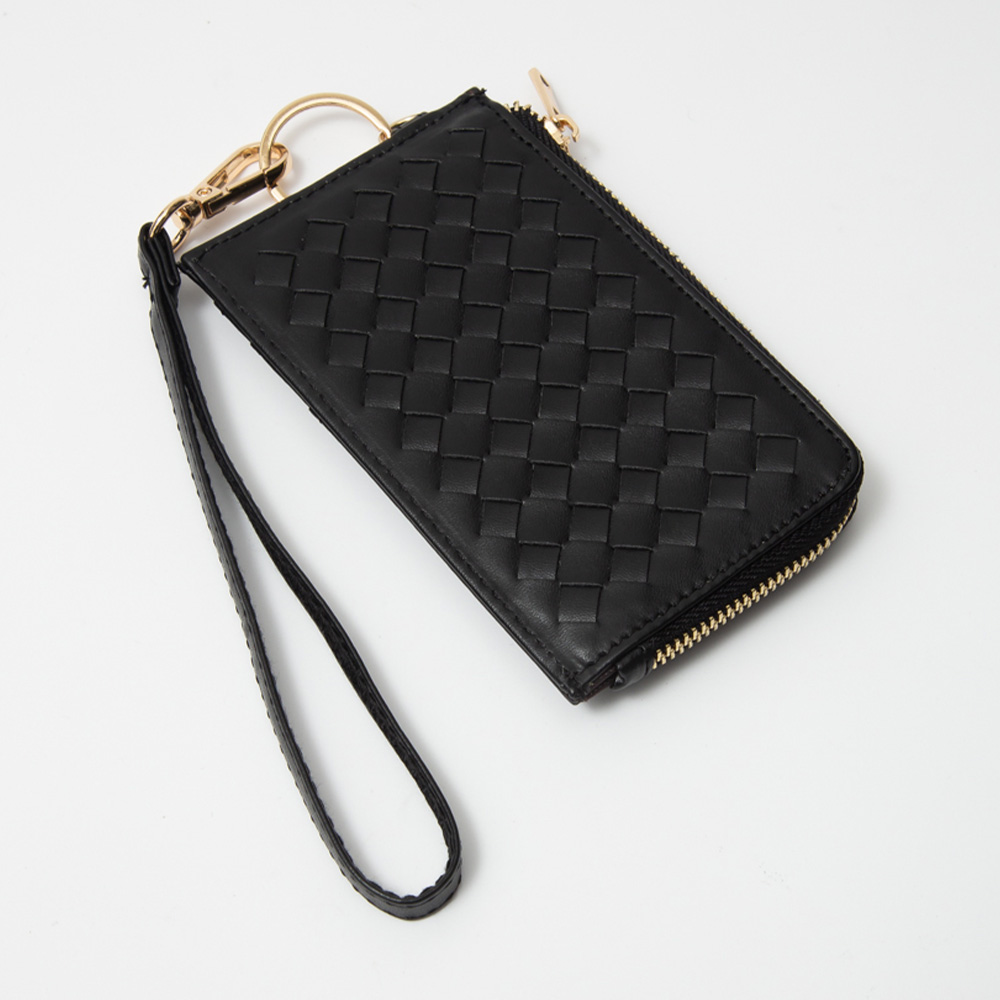 Faux Leather Basket Weave Flat Card Holder Wallet with Wristlet