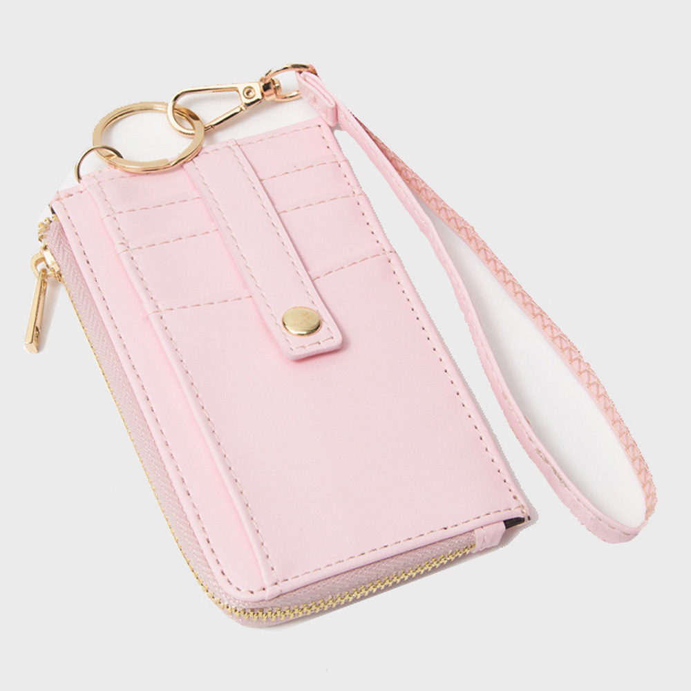 Faux Leather Basket Weave Flat Card Holder Wallet with Wristlet