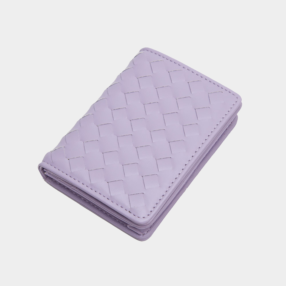 Faux Leather Basket Weave Fold Card Holder Wallet
