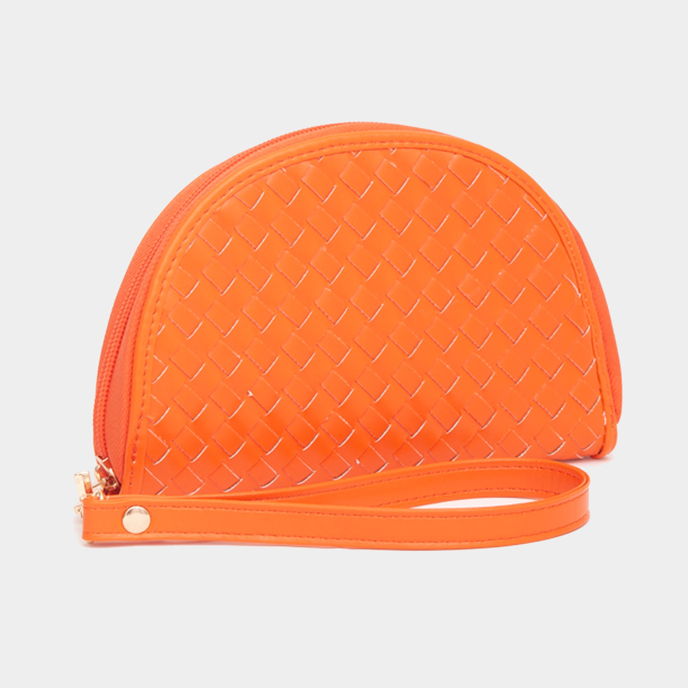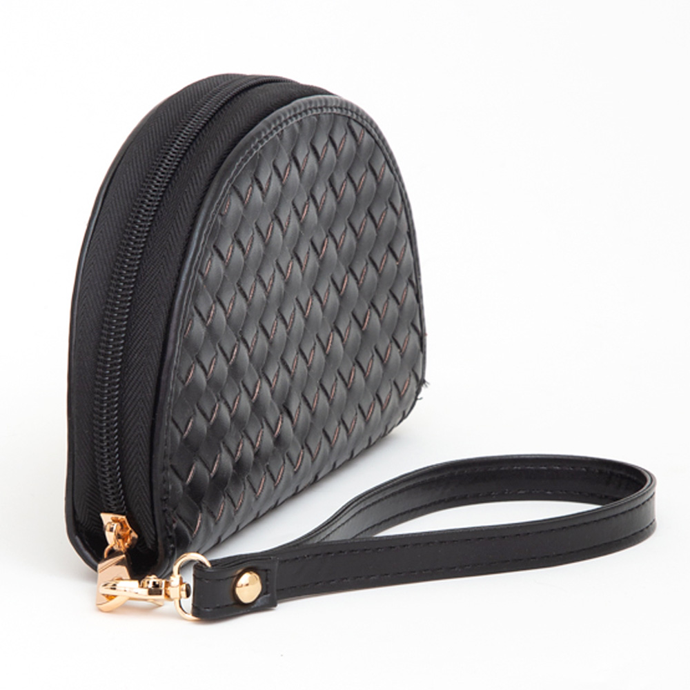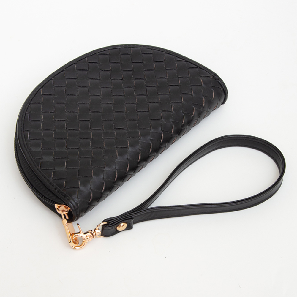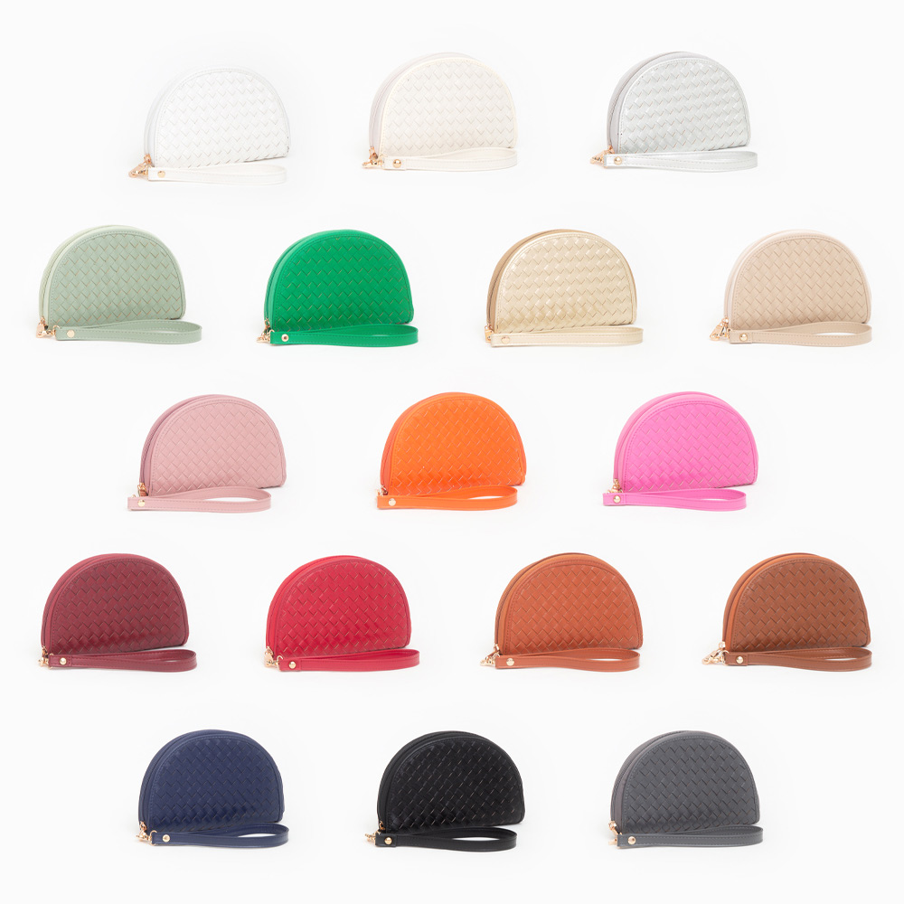 Faux Leather Basket Weave Half Moon Shaped Wristlet Wallet