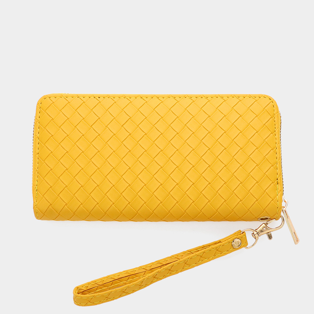 Faux Leather Basket Weave Wallet with Wristlet