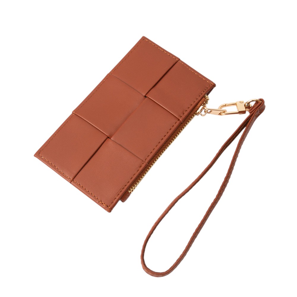 Faux Leather Weave Flat Wristlet Card / Coin Wallet