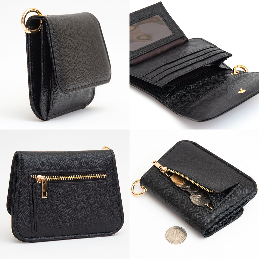 Faux Pebble Leather Compact Card Wallet Bag Charm