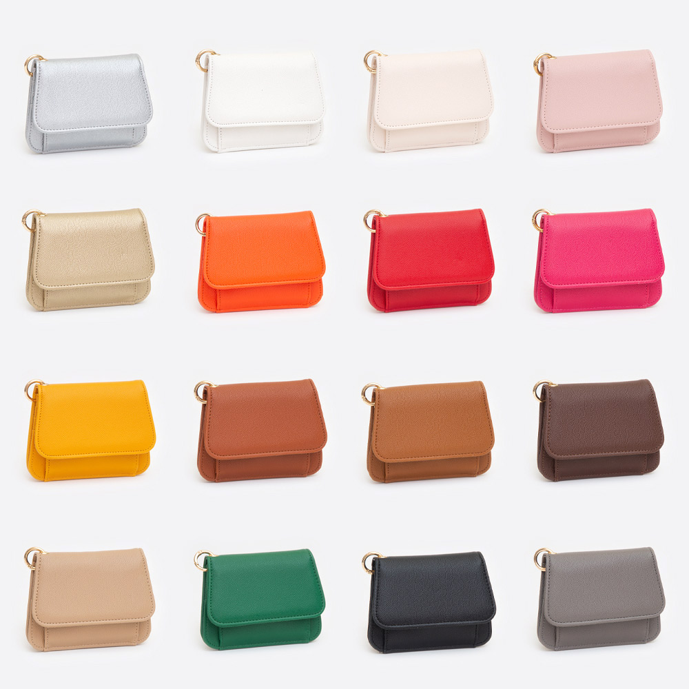 Faux Pebble Leather Compact Card Wallet Bag Charm