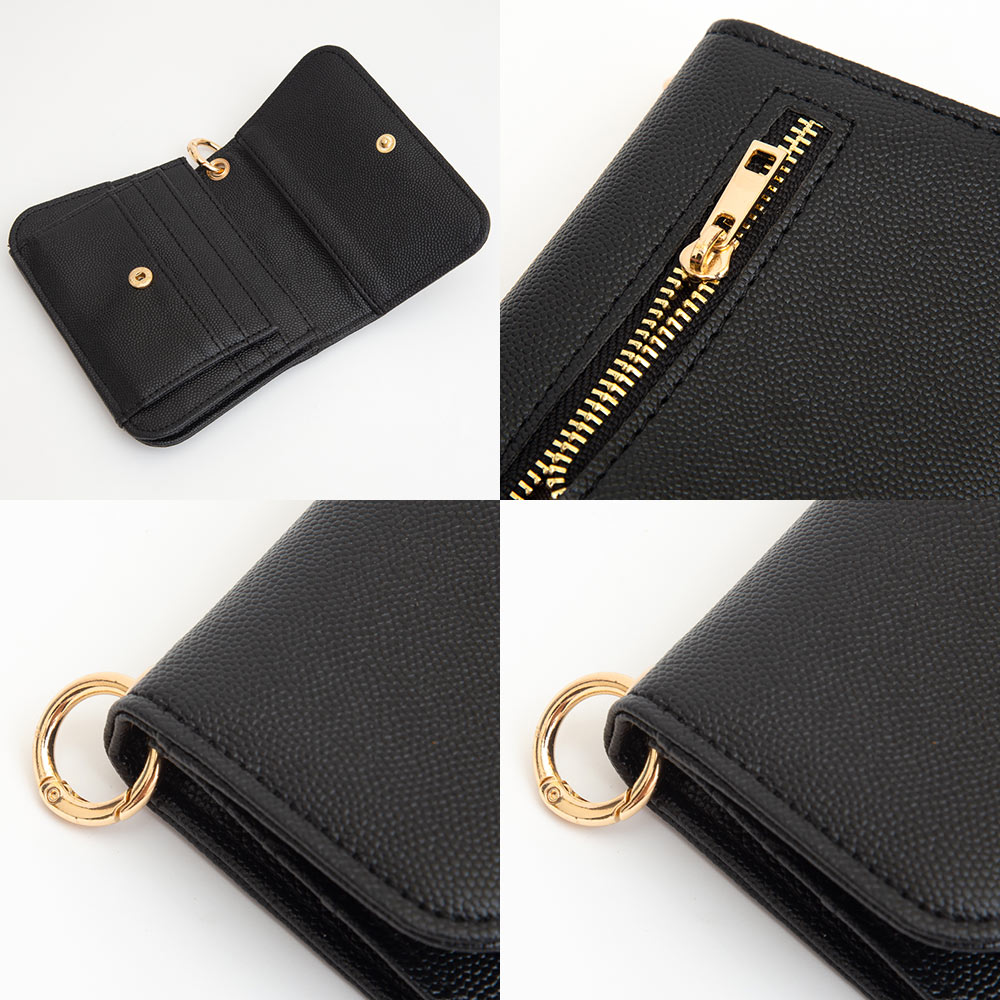 Faux Pebble Leather Compact Card Wallet Bag Charm