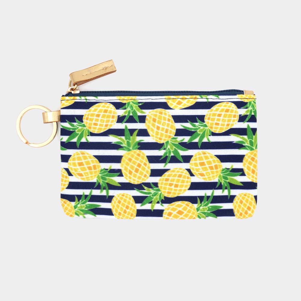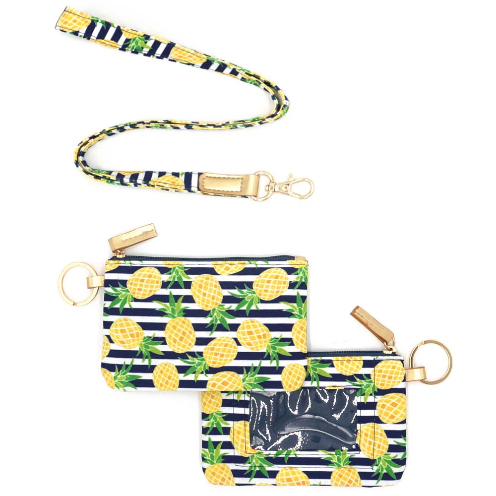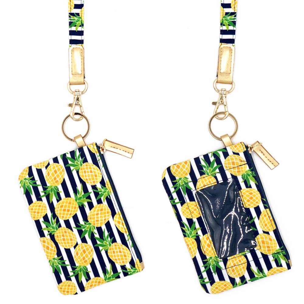 Pineapple Accented Striped ID Wallet Detachable Lanyard