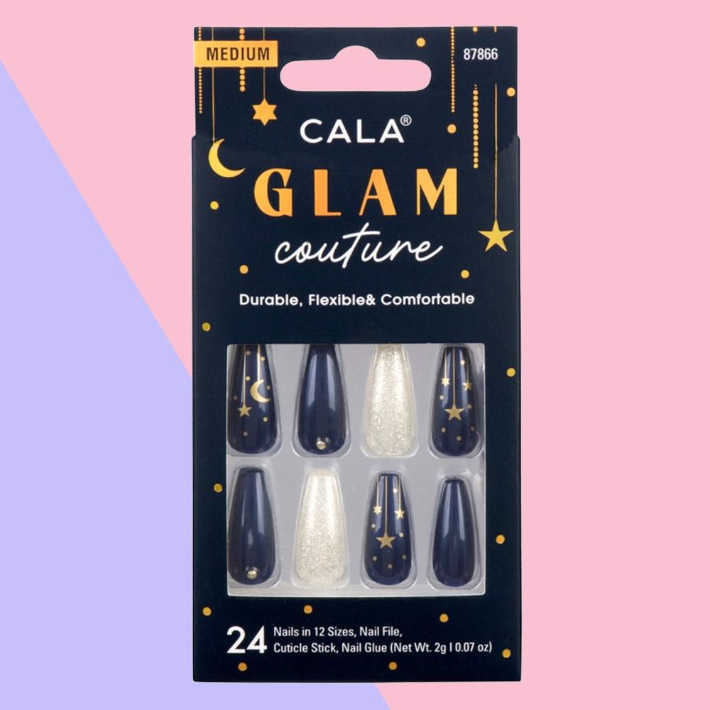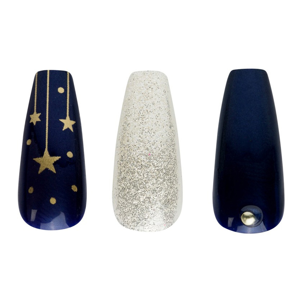 24PCS - Glam Couture Medium Coffin Dark Blue Glitter Press on Nail Set