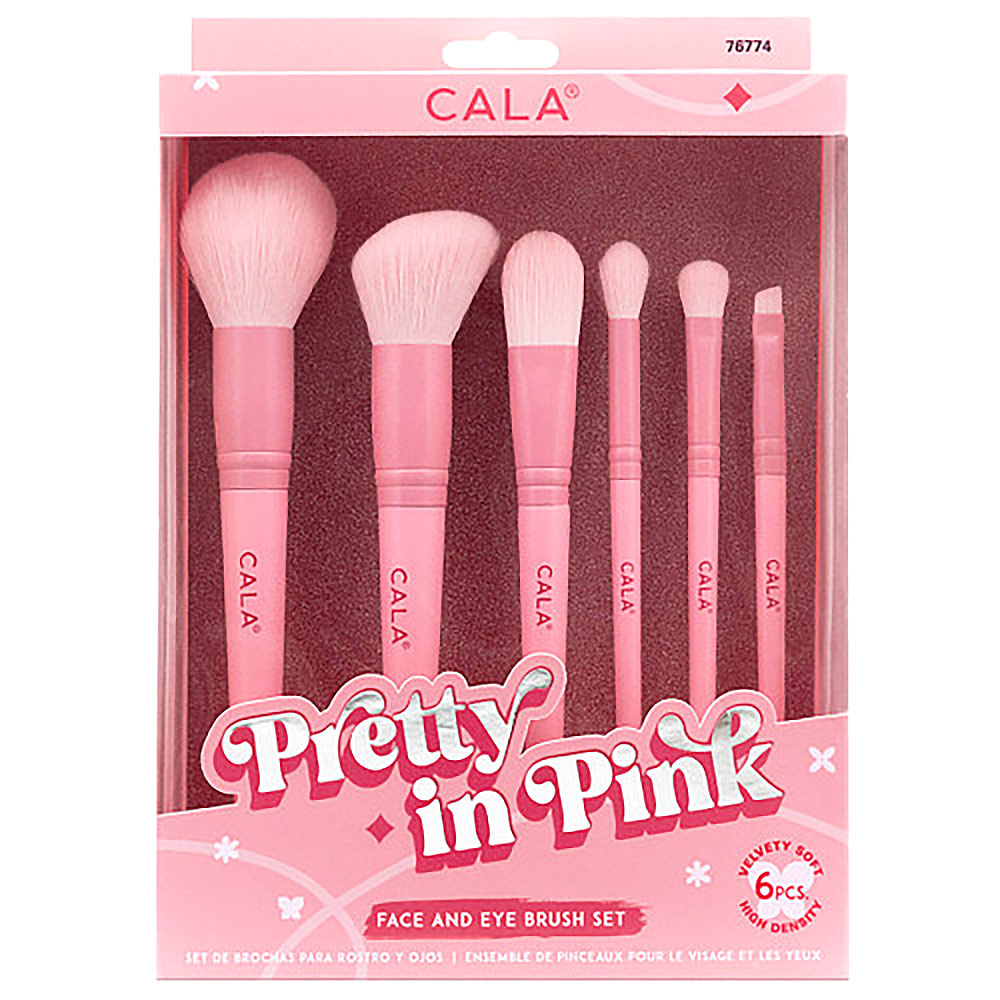 • Pretty In Pink Face & Eye Brush Set features six essential brushes needed to create the perfect look.