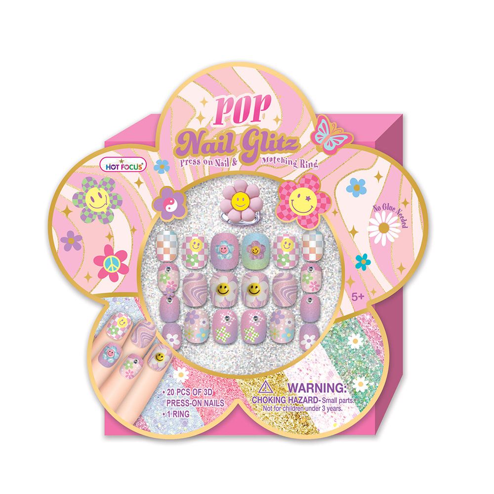 HOT FOUS - Kids Pop Nail Glitz Press on Nail and Matching Ring Set