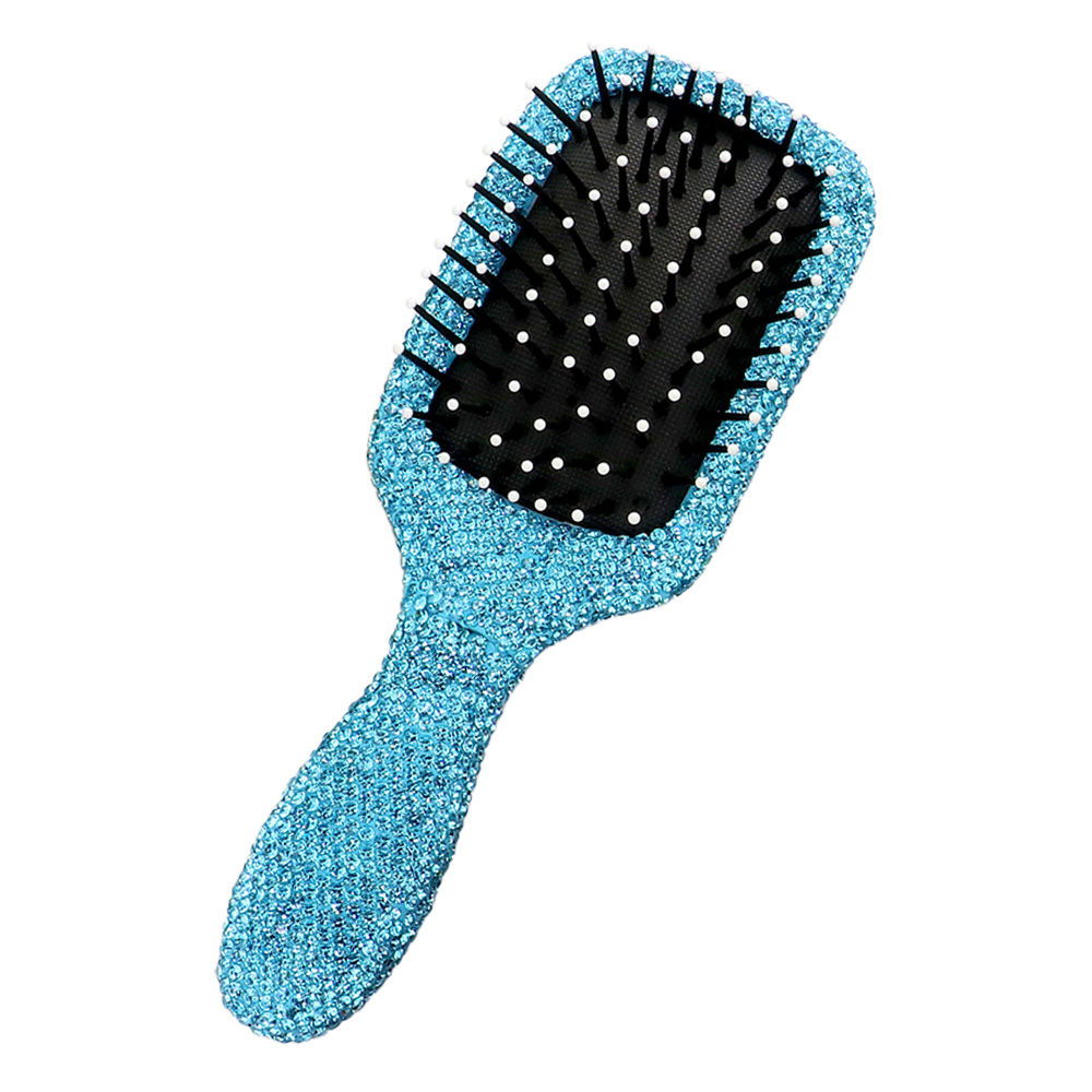 • Elegant paddle hair brush adorned with rhinestones for a stylish touch. Ideal for detangling and smoothing hair with ease, featuring ball-tip bristles for gentle grooming.