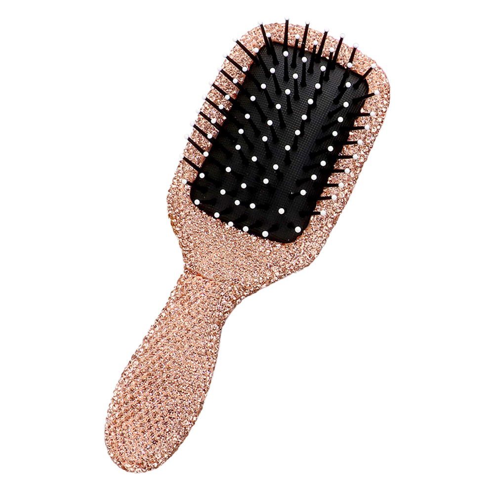 • Elegant paddle hair brush adorned with rhinestones for a stylish touch. Ideal for detangling and smoothing hair with ease, featuring ball-tip bristles for gentle grooming.