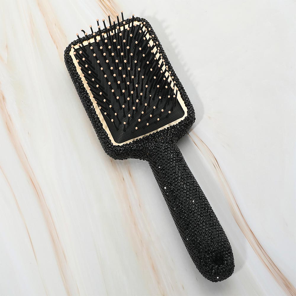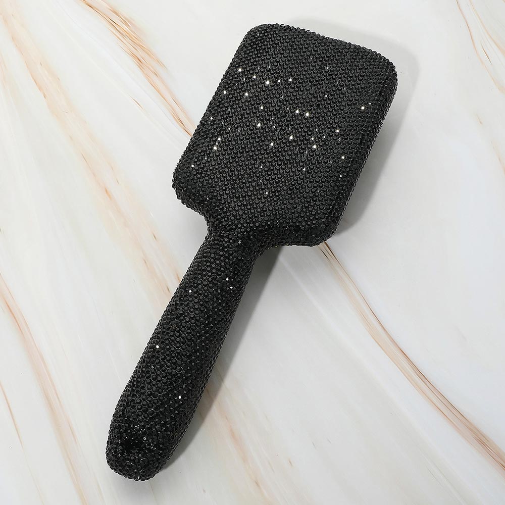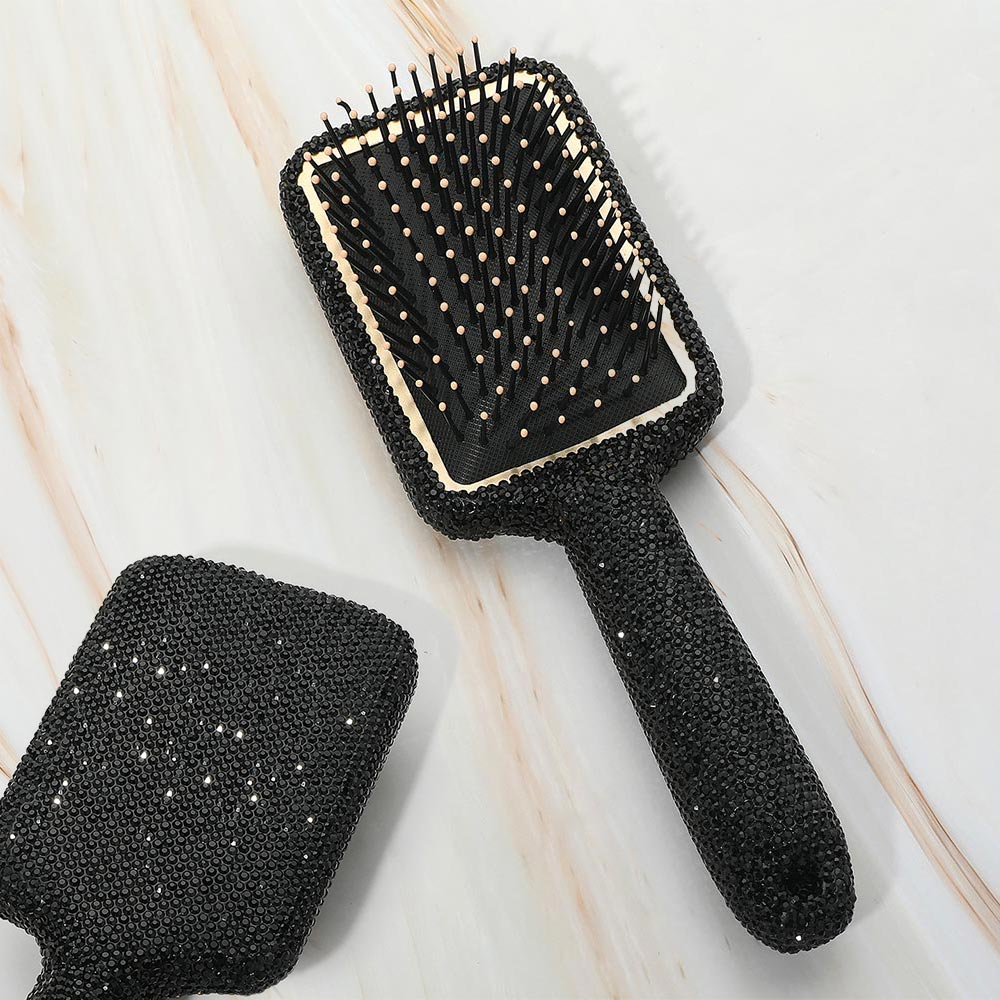 • Glamorous rhinestone paddle brush set with cushioned bases and ball-tip bristles. Ideal for detangling, smoothing, and styling hair comfortably with a luxurious look.