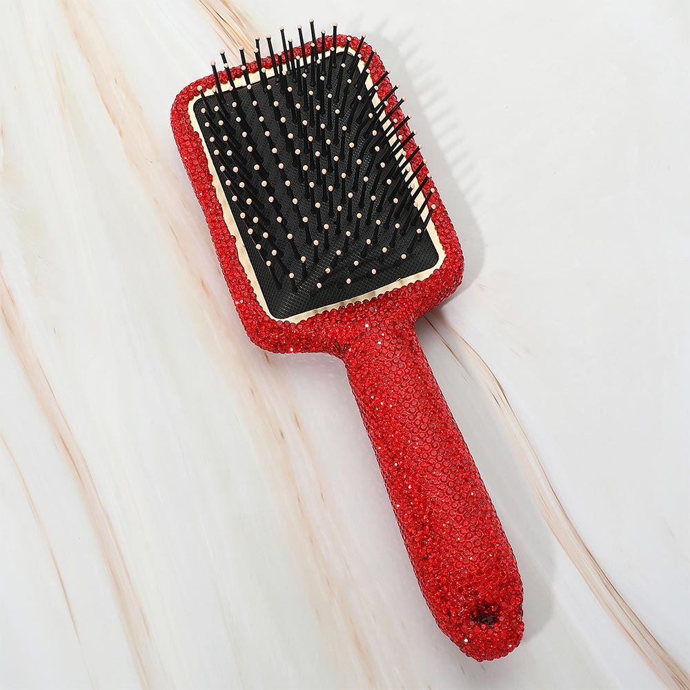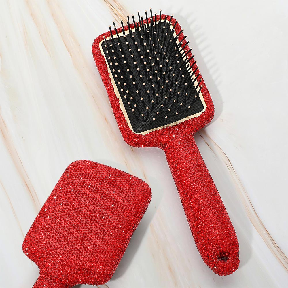 • Glamorous rhinestone paddle brush set with cushioned bases and ball-tip bristles. Ideal for detangling, smoothing, and styling hair comfortably with a luxurious look.