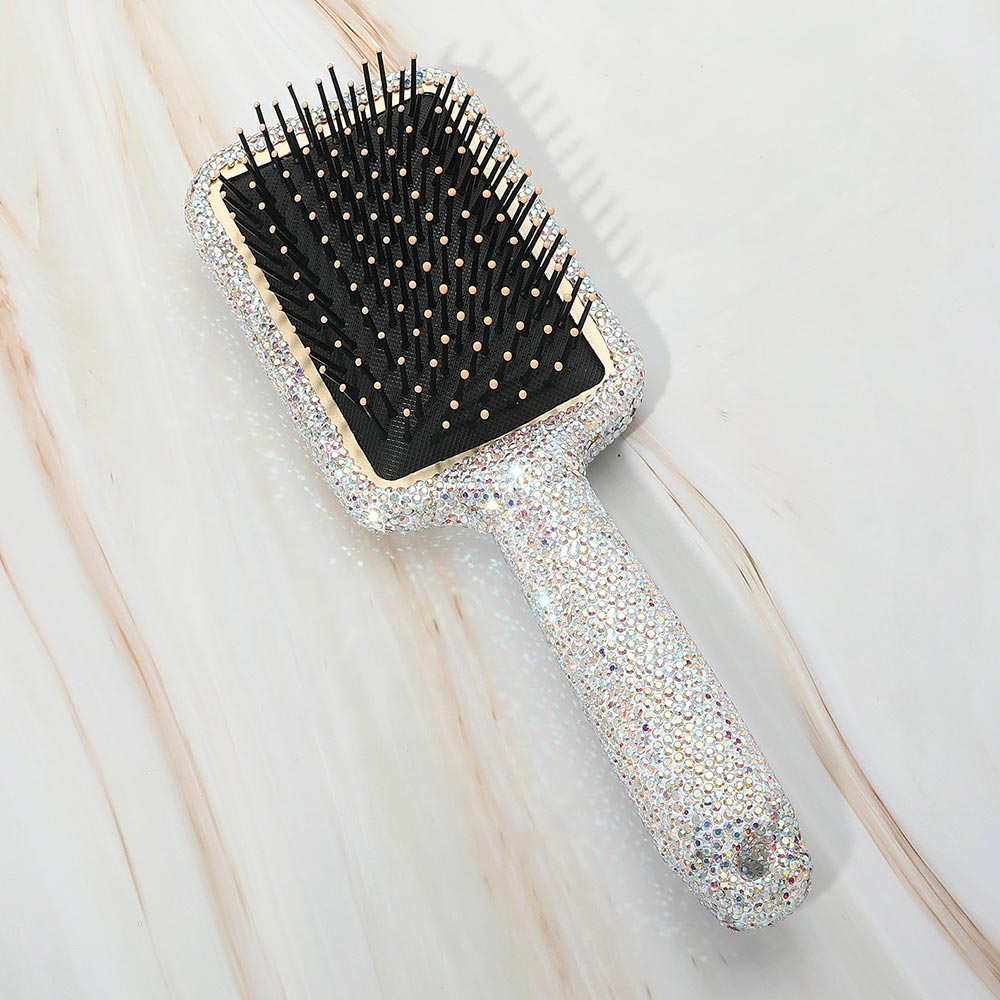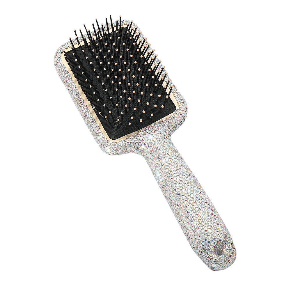 • Glamorous rhinestone paddle brush set with cushioned bases and ball-tip bristles. Ideal for detangling, smoothing, and styling hair comfortably with a luxurious look.