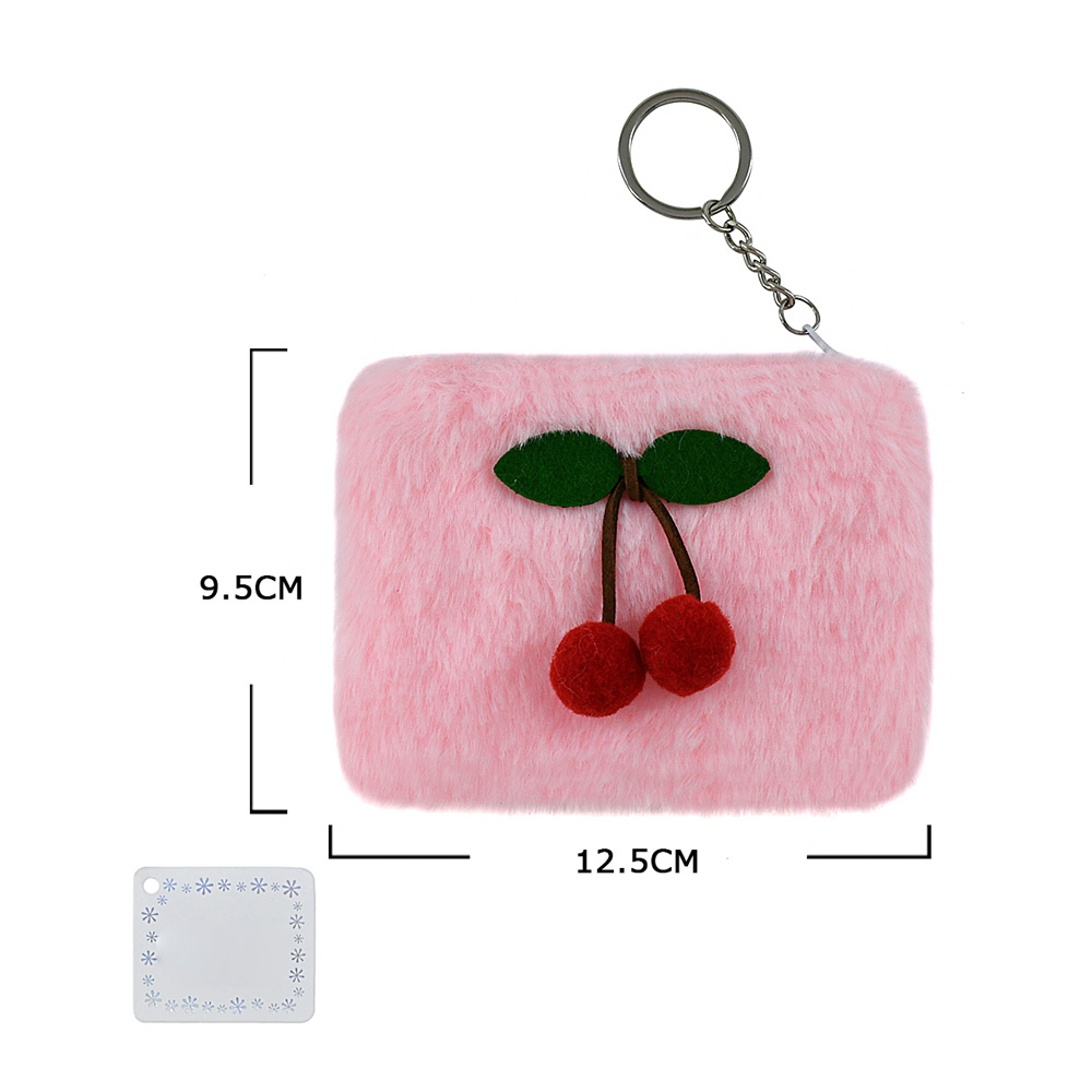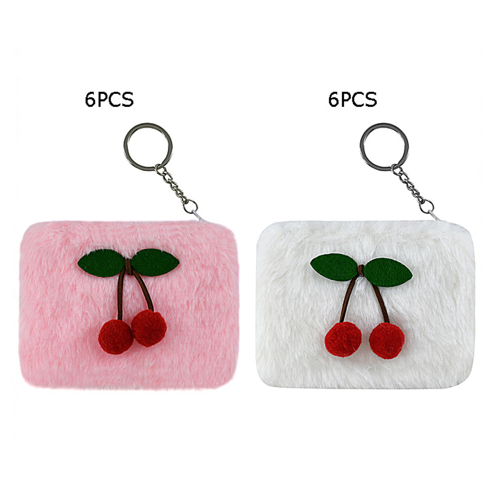 12PCS - Pom Pom Cherry Accent Fur Mini Pouch Bags