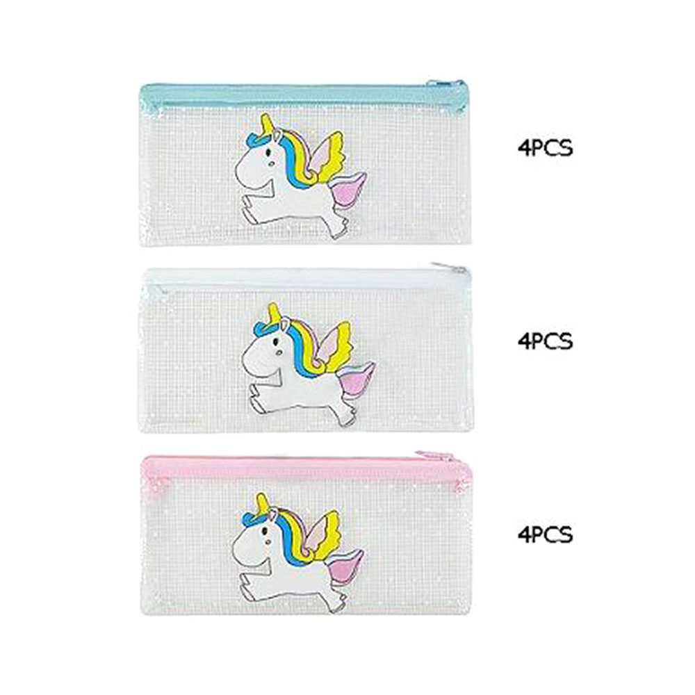 • Set of 12 unicorn-themed glitter pouches with zipper closures. Perfect for storing pencils, makeup, or small items. Ideal for party favors, school supplies, or travel use. Fun and durable design.