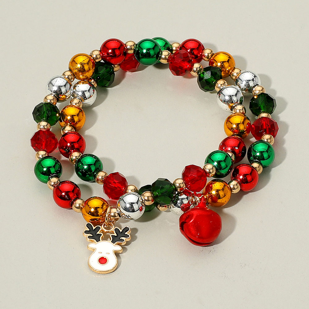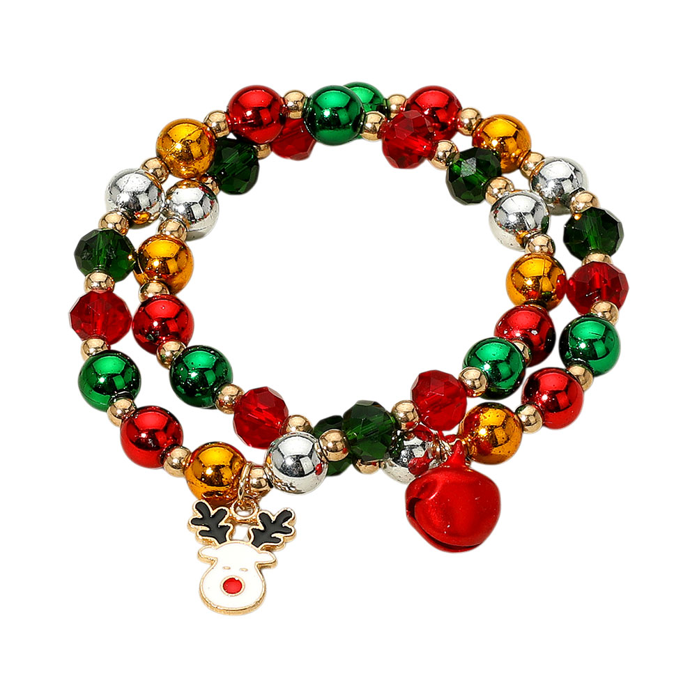 Details • Size : 0.4" H • Charm Size : Approximately 0.75" L • Stretchable • Bring festive cheer to your style with this Christmas beaded multi layered bracelet featuring colorful beads, a playful charm, and a jingling bell. Comfortable and stylish, this joyful accessory is perfect for holiday parties, seasonal outfits, or gifting. • Lead and Nickel Compliant