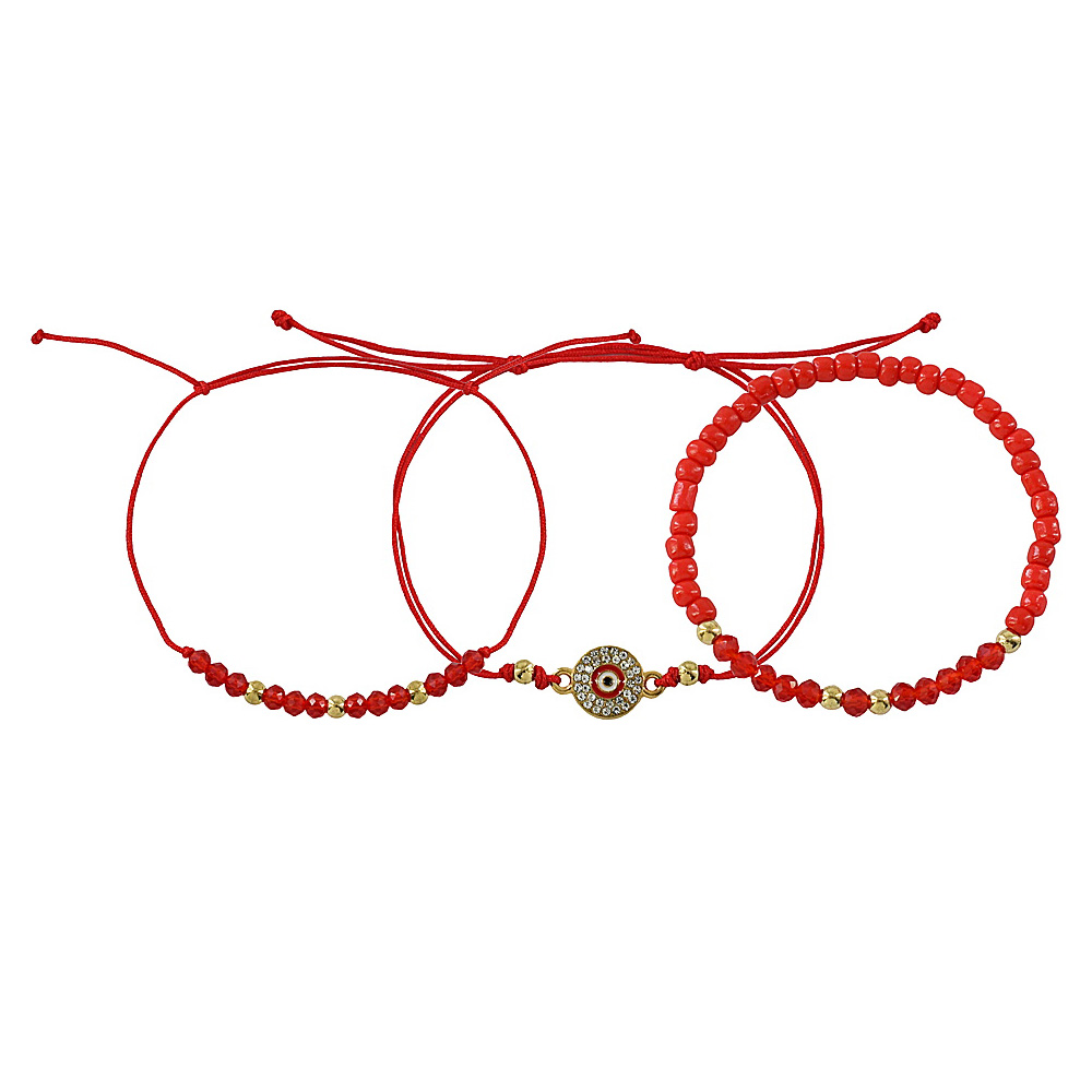 Details • Size1 : 0.2" H, Stretchable • Size2 : 0.7" H, Adjustable Cinch Pull Tie • Add protection and style with this set of 3 adjustable beaded bracelets featuring gold accents and a sparkling evil eye charm. Perfect for stacking or wearing separately, these versatile bracelets bring vibrant color and meaningful symbolism to any outfit. • Lead and Nickel Compliant