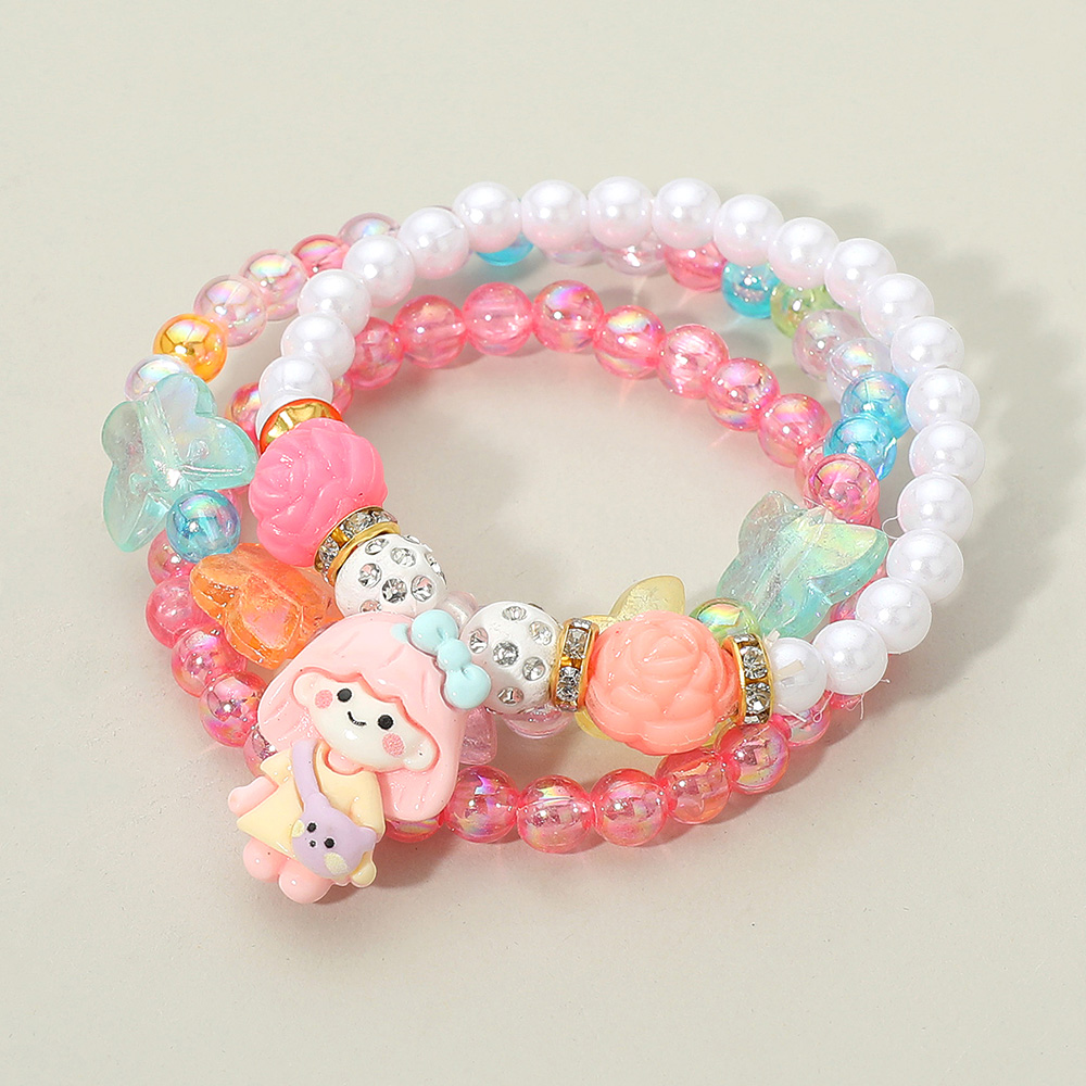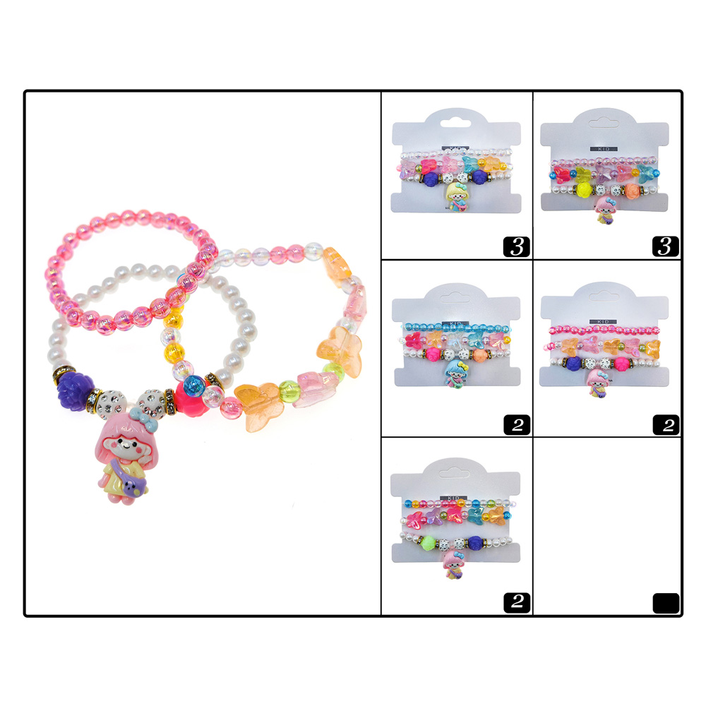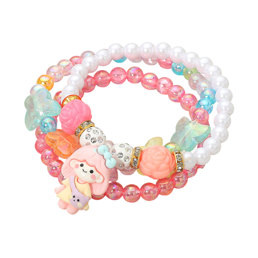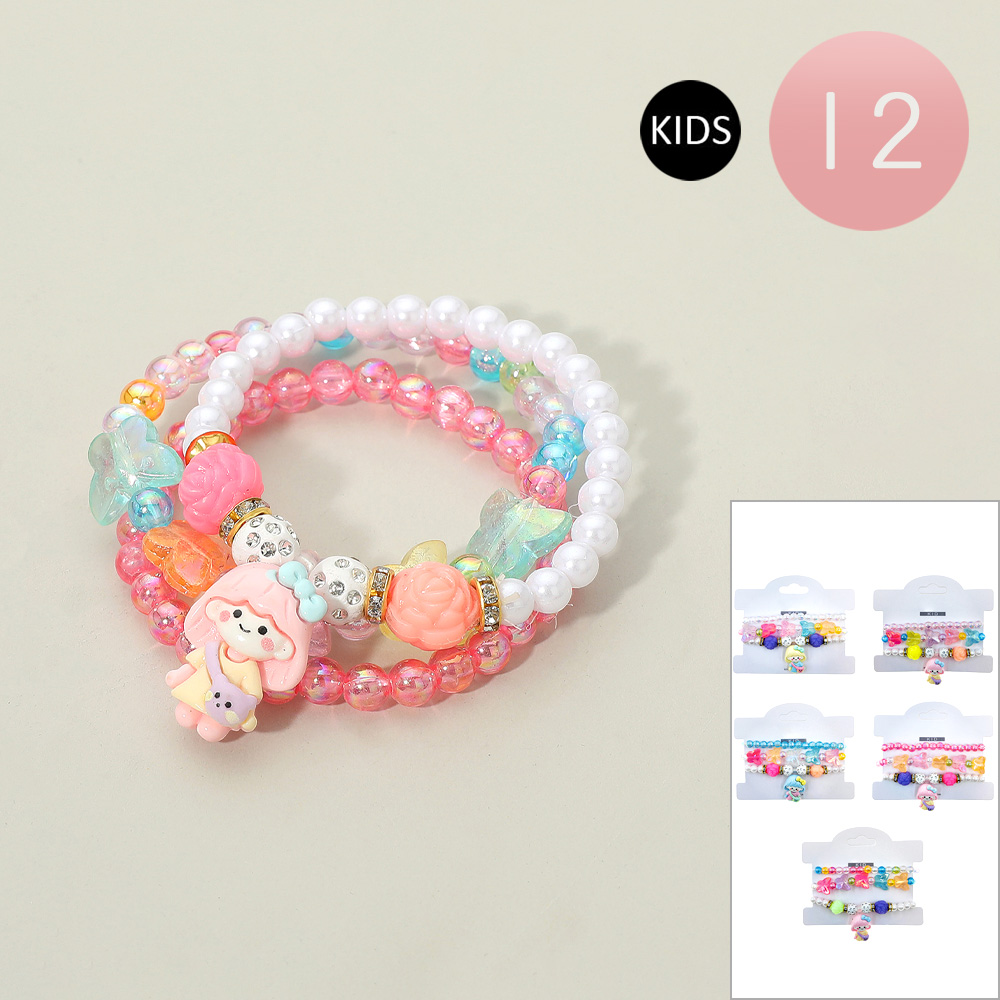 Details • Size : 2" H • Stretchable • Adorable kids’ bracelet set featuring a cute girl charm with sparkling and floral bead accents. Stretchy and easy to wear, this 12-piece pack makes a perfect gift for birthdays, party favors, or daily outfits, bringing playful charm and fun style to children’s jewelry collections.